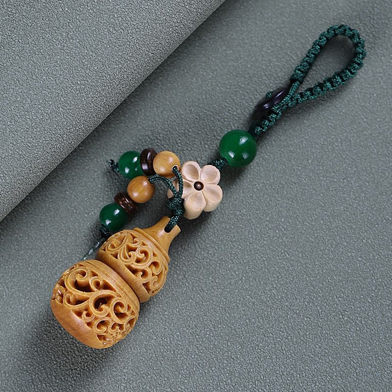緑檀木の透かし彫りのヒョウタンの自動車のキーは男性の金の女性のウサギの年の本命の年を掛けて香の袋を飾ります。