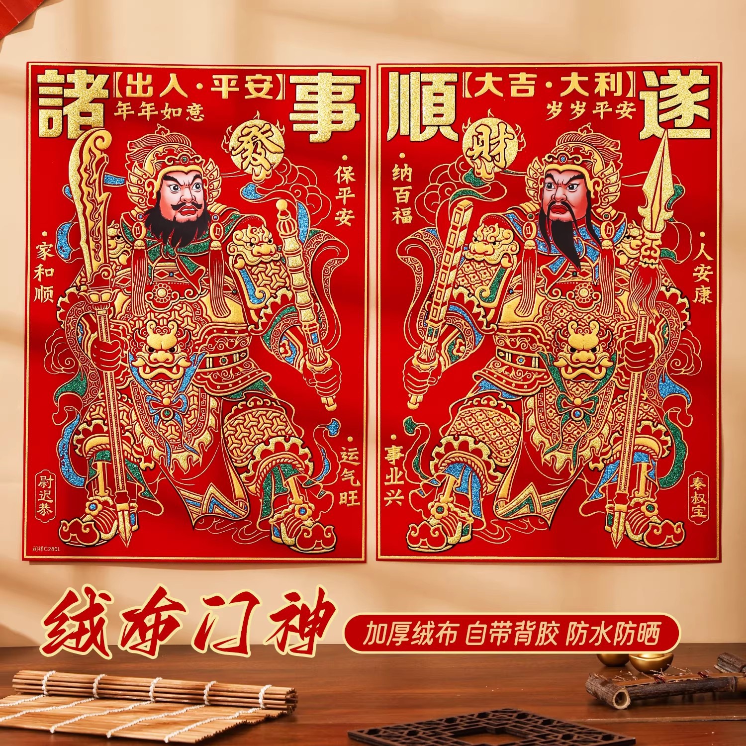 2026年馬年 ベルベット製玄関神飾り画 シングルドア用 魏至公 秦叔宝 新年画 ドアステッカー 春節 金縁