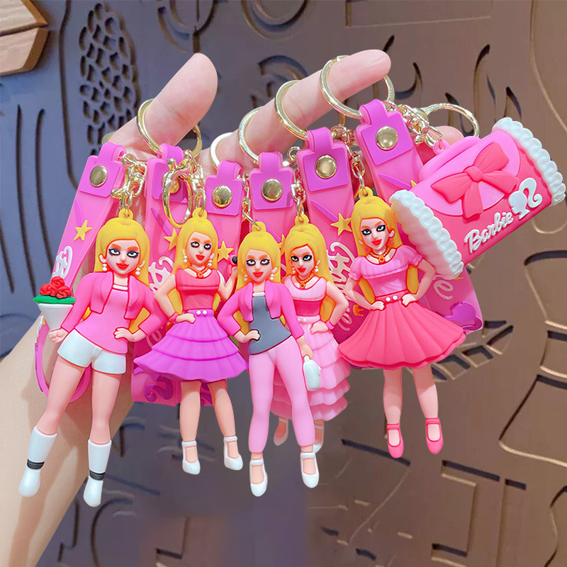 国境を越えた対外貿易ピンクのバービー王女のキーホルダーがかわいいbarbieストラップ車のキーホルダーのかばんが女性を飾っている