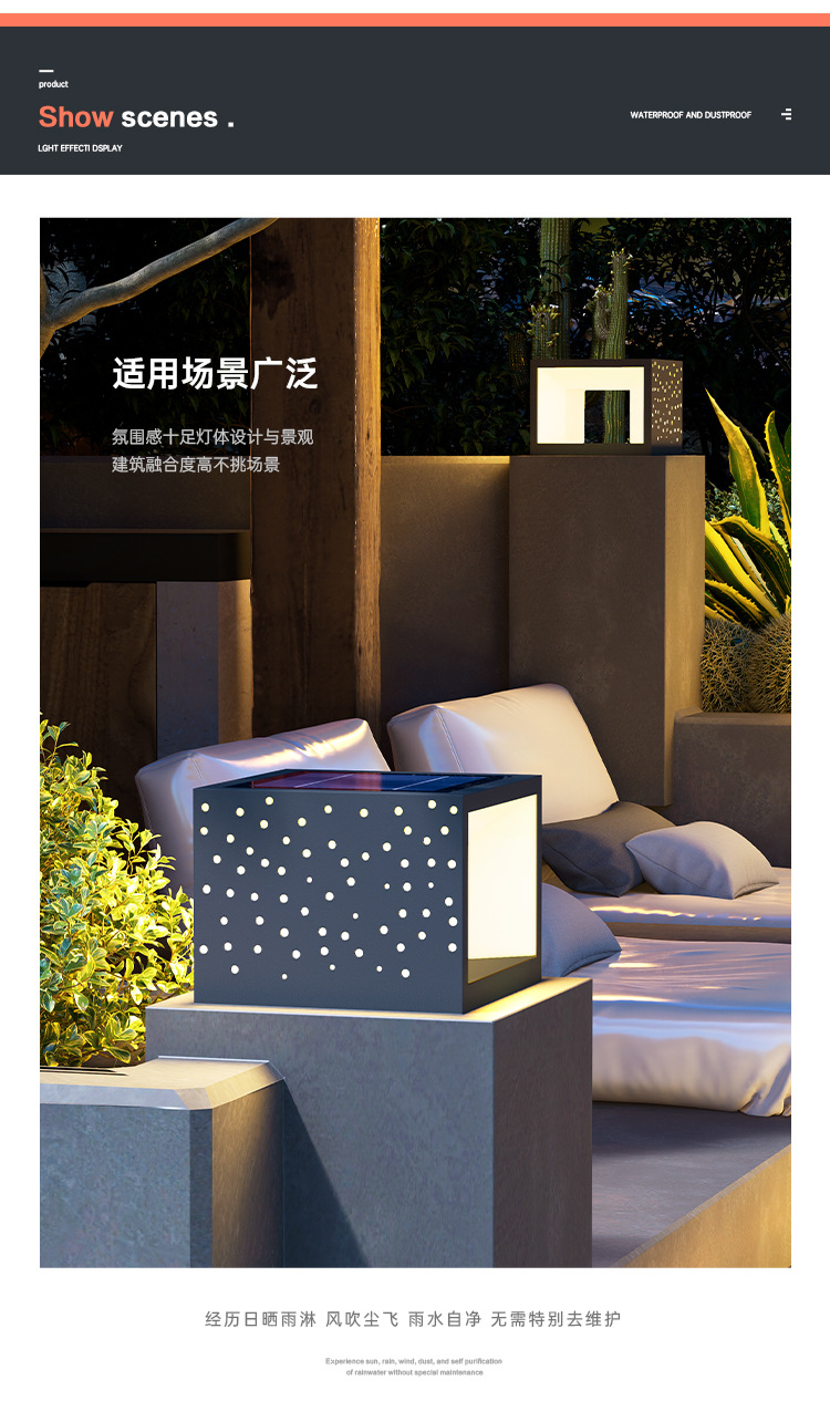 現代のシンプルな景観庭灯太陽エネルギー柱ヘッドライト創意防水設計塀庭柱灯