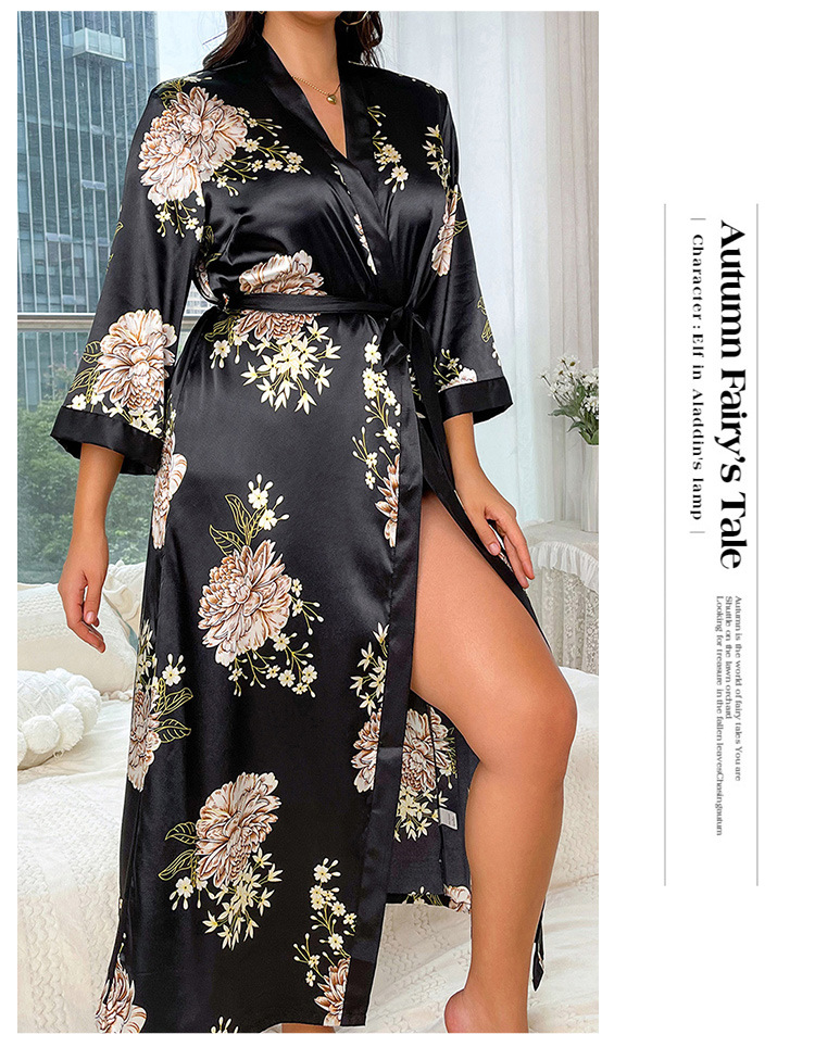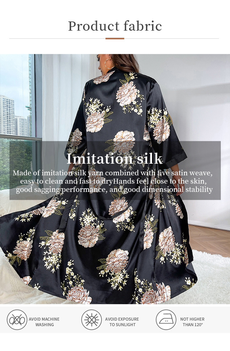 ヨーロッパとアメリカンスタイルの春夏クロスボーダープリントバスローブ、女性用セクシーでファッショナブルなイミテーションシルクナイトガウン、ファッショナブルでカジュアルなホームウェア
