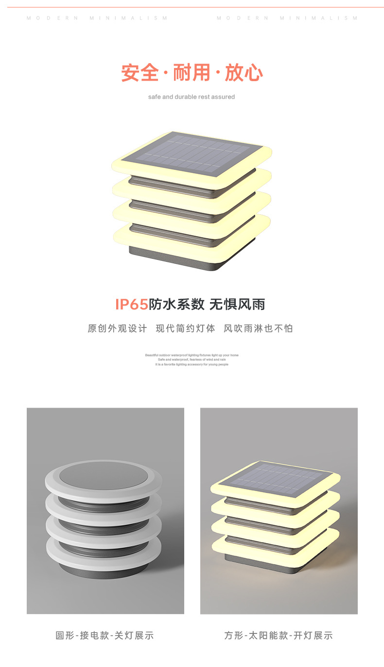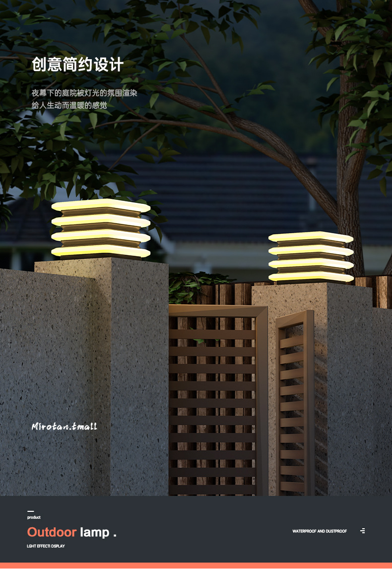 太陽エネルギーの柱のヘッドライトの屋外の防水の別荘の門の柱の明かりの庭の柱の明かりの玄関の明かりの庭の壁の柱の明かり