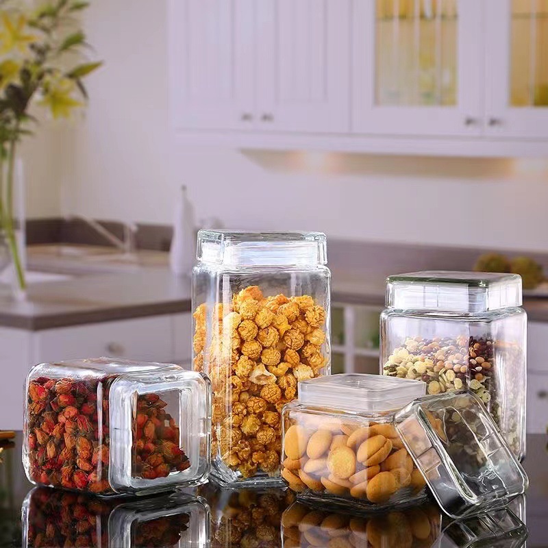 角型透明ガラス密封缶キッチン雑穀貯蔵缶茶葉缶食品収納缶蜂蜜瓶マスク