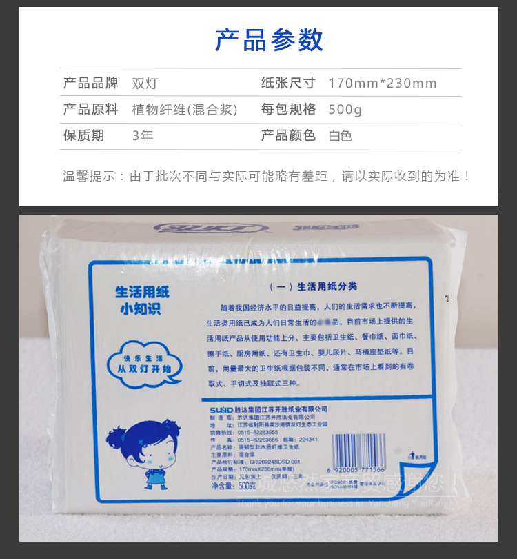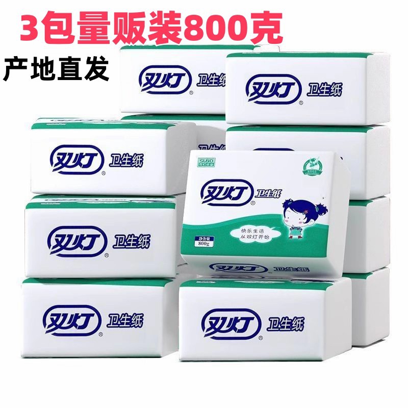 双灯平板卫生纸家用800g克平板纸3包盐城厂家直供厕纸方草卫生纸