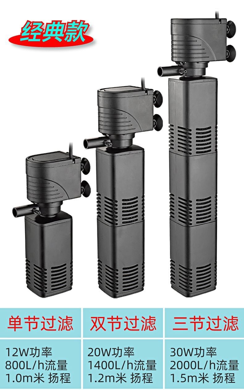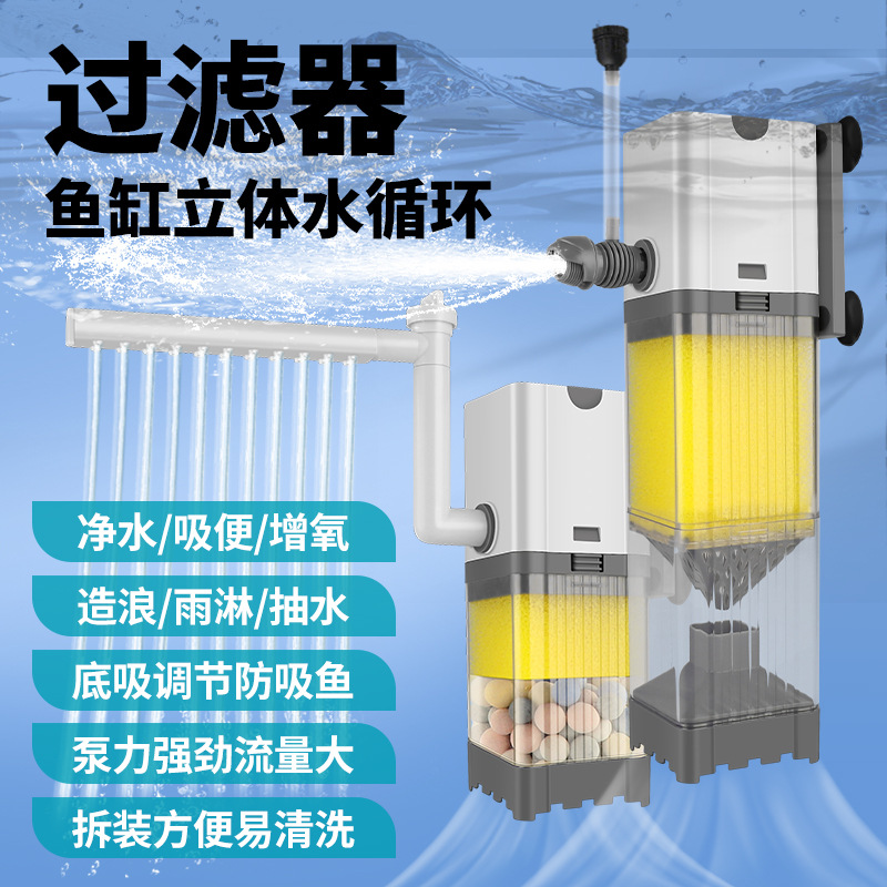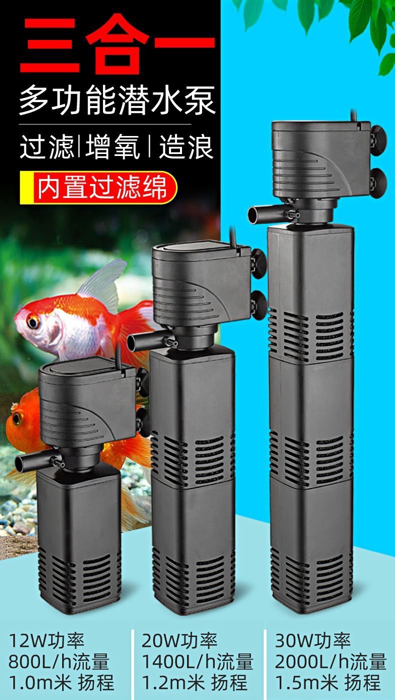 鱼缸三合一潜水泵过滤器过滤水族箱净水增氧静音水泵循环内置