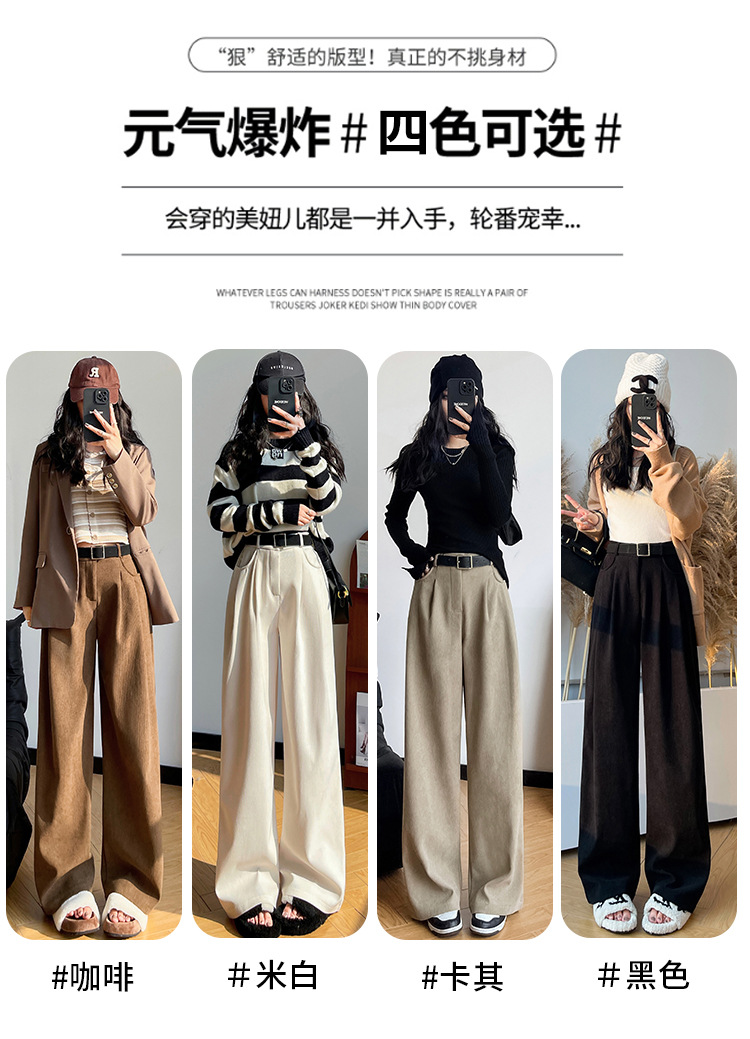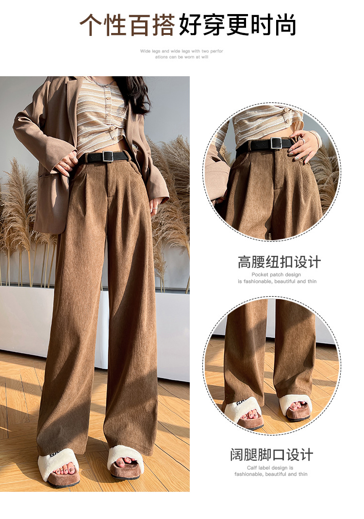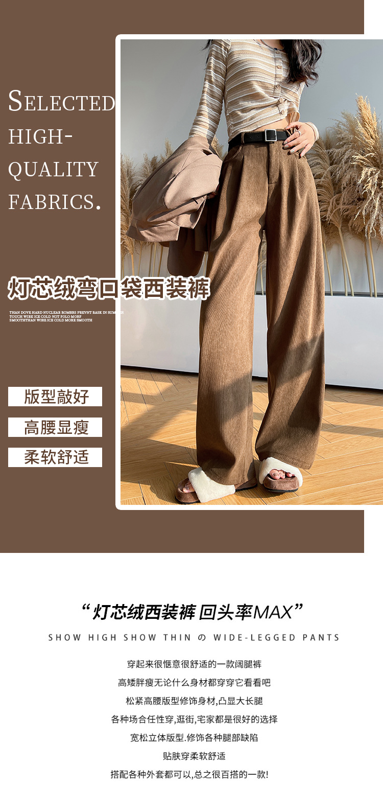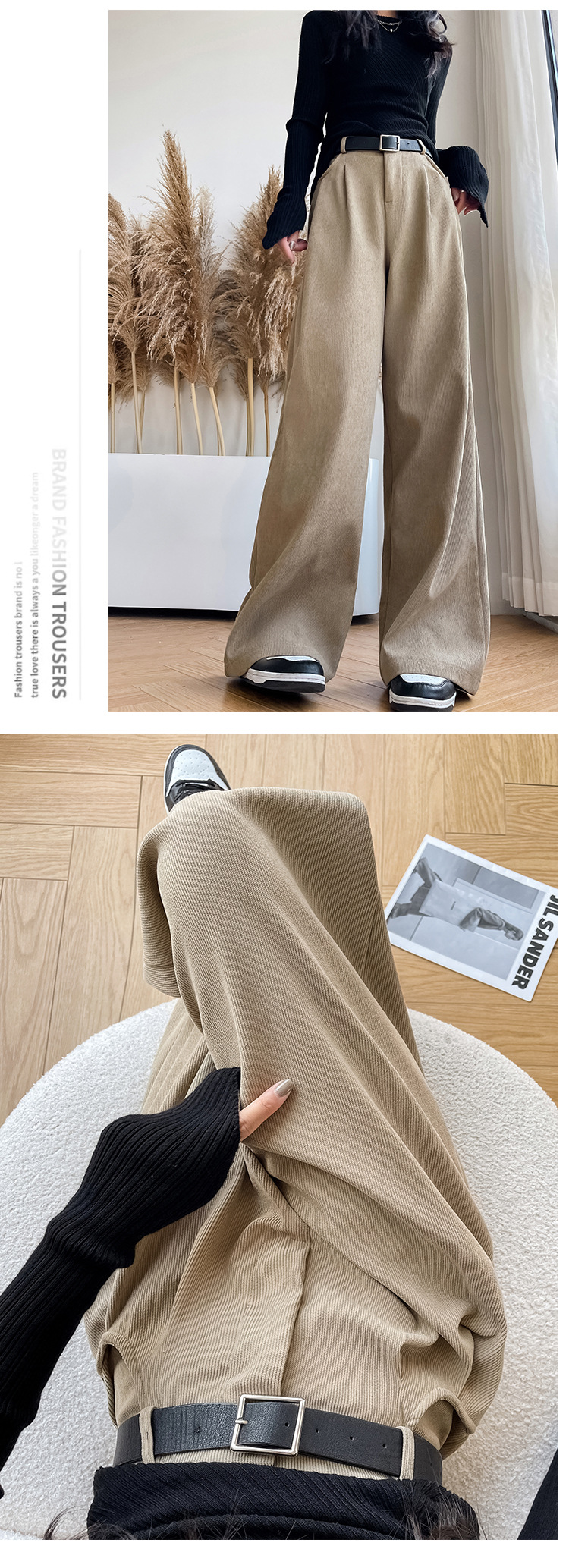 メイラードコーデュロイパンツ レディース 秋新作 スリム ルーズスーツパンツ カジュアル ストレート ハイウエスト ワイドレッグパンツ レディース