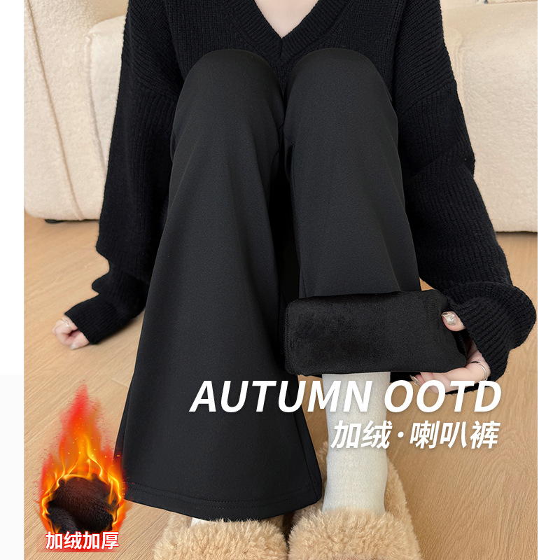 黒いベルベットのスポーツパンツの女性秋冬の新型はやせているスリムなトランペットのズボンの高腰の垂れ下がった感じの小さい太もものズボンです。