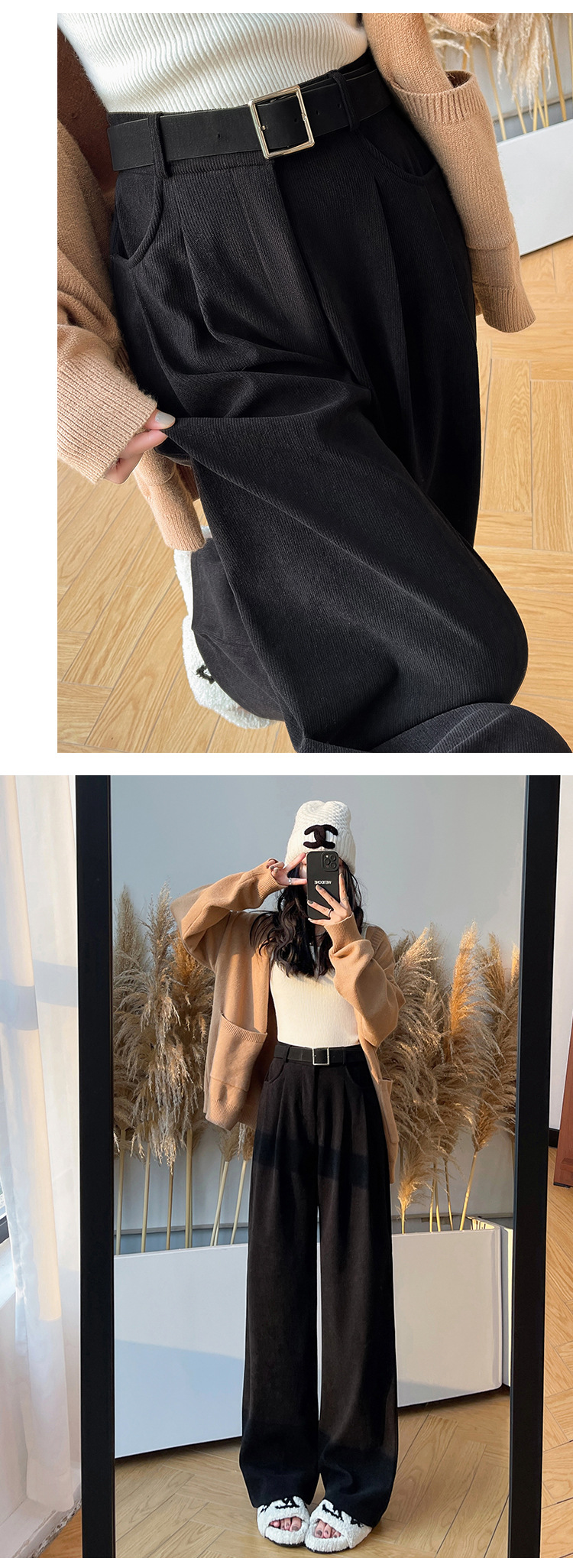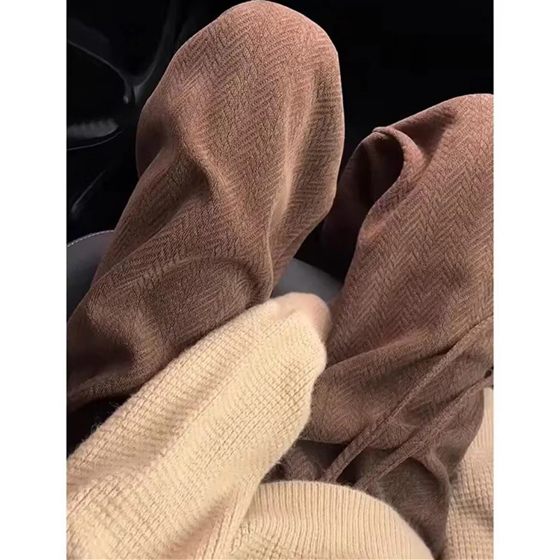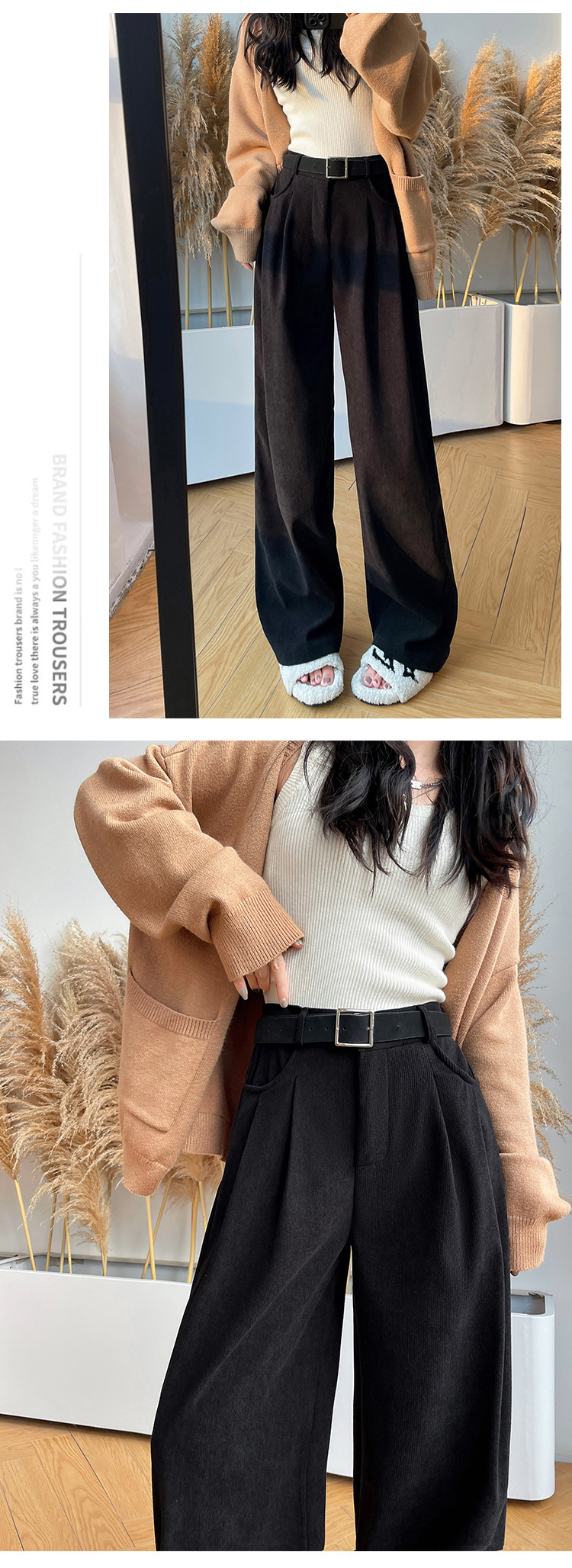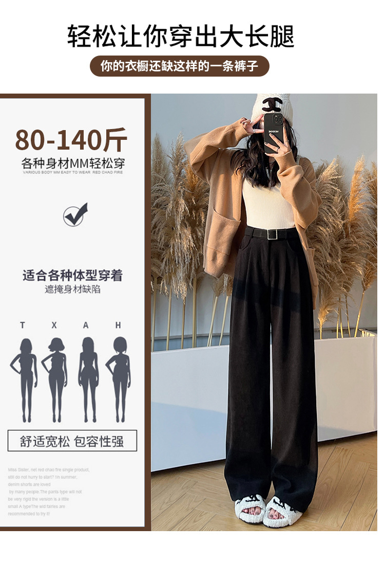 ヘリンボーンシェニールワイドレッグパンツレディース秋冬新作ベルベットパンツ痩身ルーズカジュアルハイウエストストレートパンツ