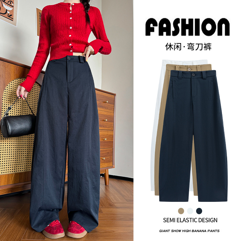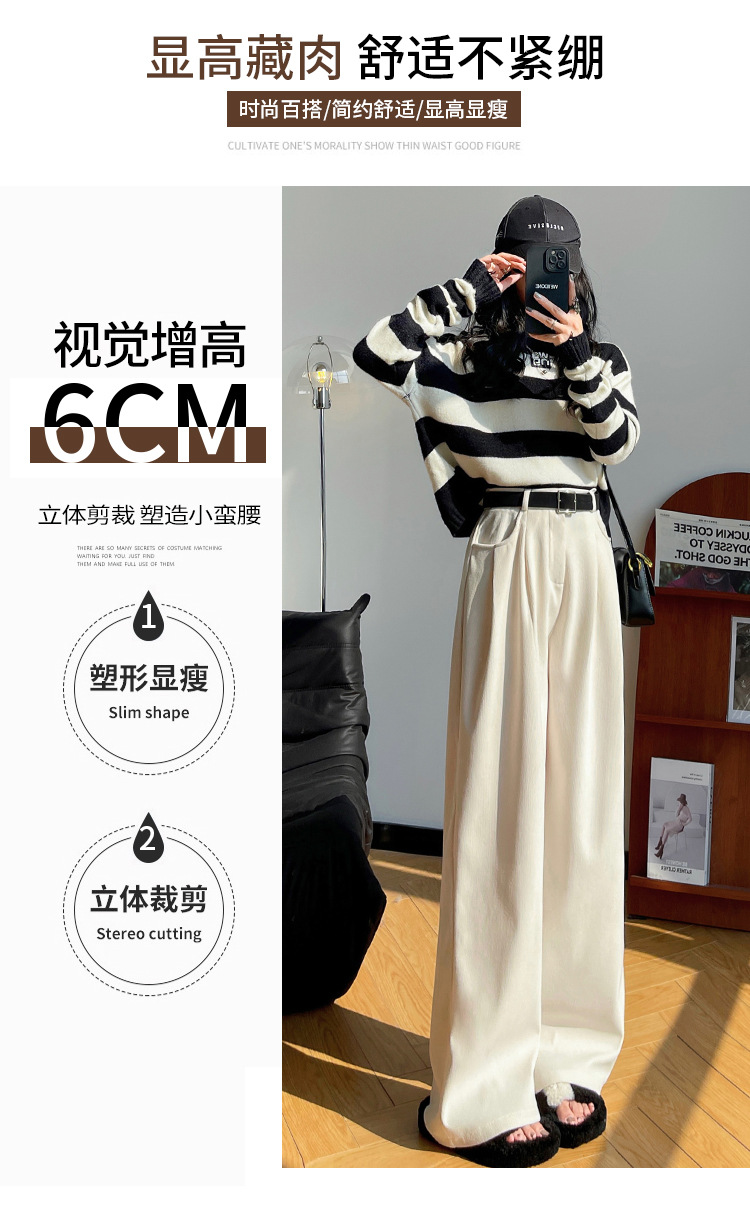 ホワイトミルクスーツパンツ秋の新作レディースパンツ女性のスリムハイウエストストレートパンツルーズレイジーワイドレッグパンツ