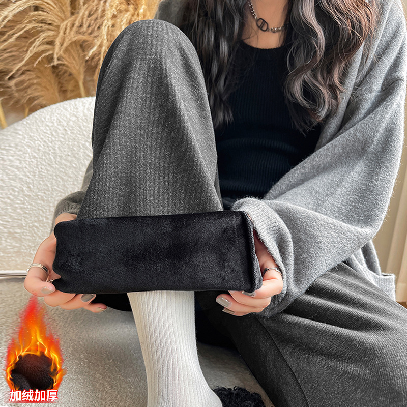 ニットのベルベットのワイドパンツグレーのもち米のズボンの女性のズボンは垂れ下がっています。