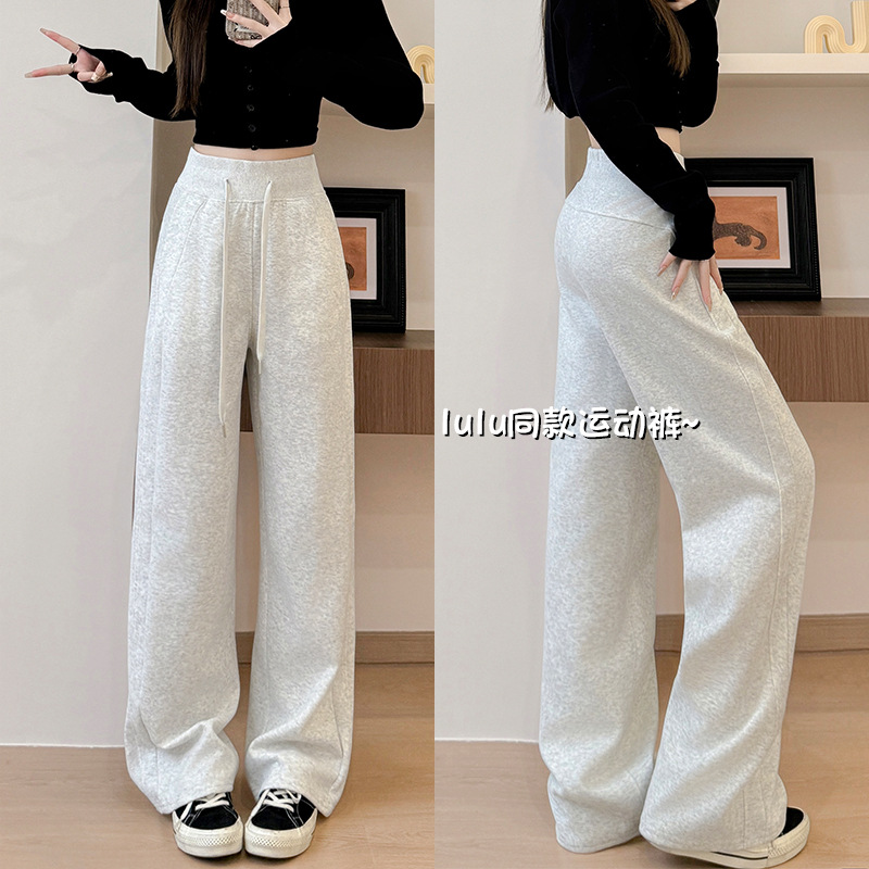 白とグレーのルルと同じスタイルのパンツ女性の春と秋の新しいルーズナローワイドレッグパンツスウェットパンツスリムストレートスポーツパンツ