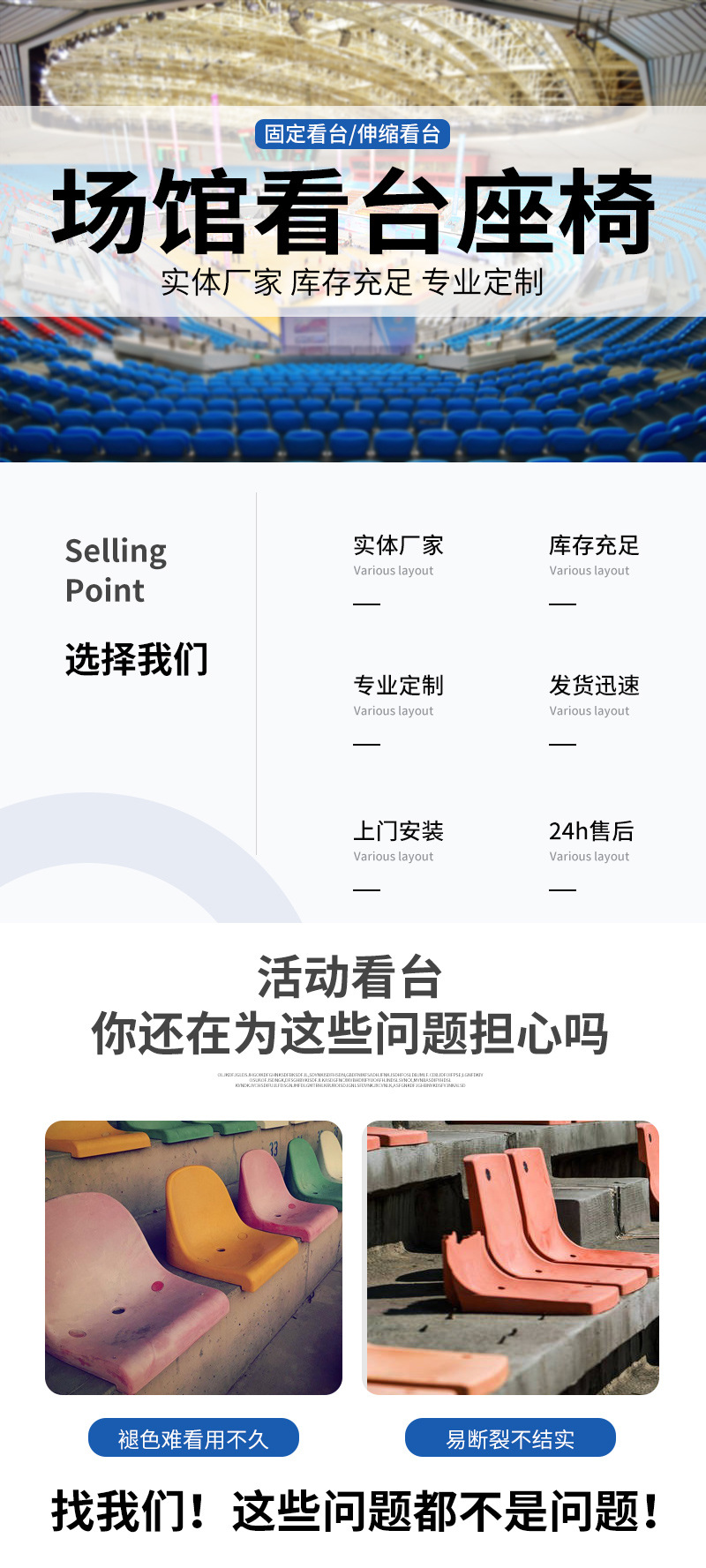 競技場スタンドシート中空ブロー成形中高低椅子バスケットコート室内外伸縮移動固定