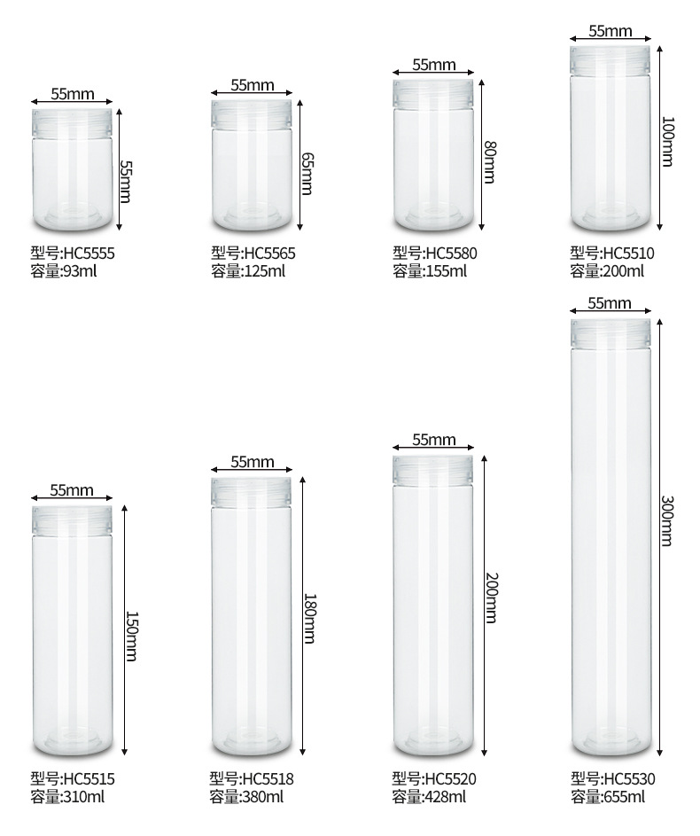 Hcg5520直径55mm高さ200mmシール収納薬草人参茶食糧肉松保存瓶