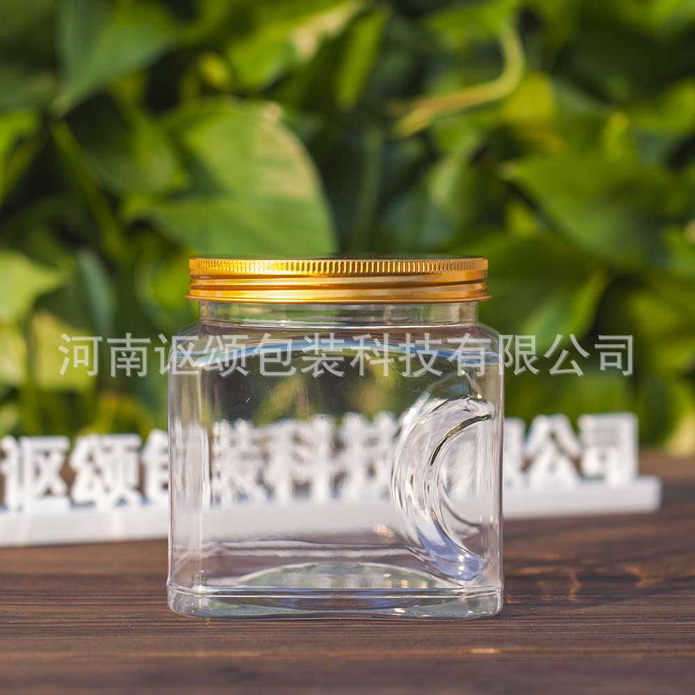 500ml660ml方形铝盖糖果罐透明广口花茶罐PET塑料瓶零食包装瓶