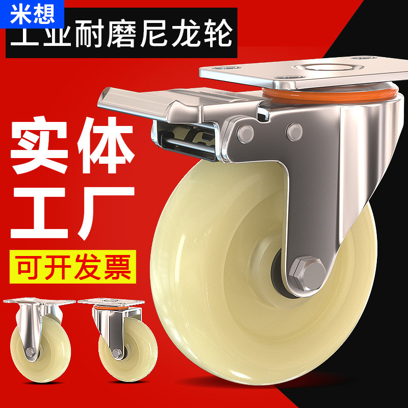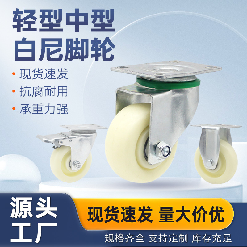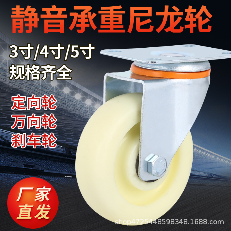 ナイロン車輪自在ブレーキ車輪3寸4寸5寸6寸8寸白尼万向輪車車輪プレート車輪
