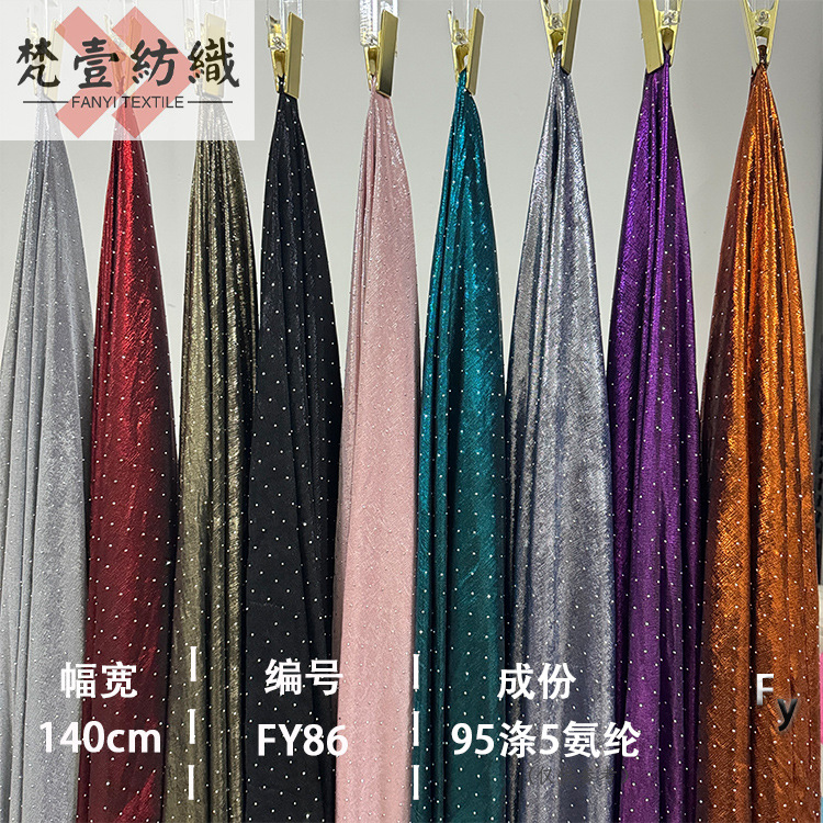 波比罗纹抖抖布撒粉烫钻带闪亮针织布料弹力晚会礼服旗袍演出面料