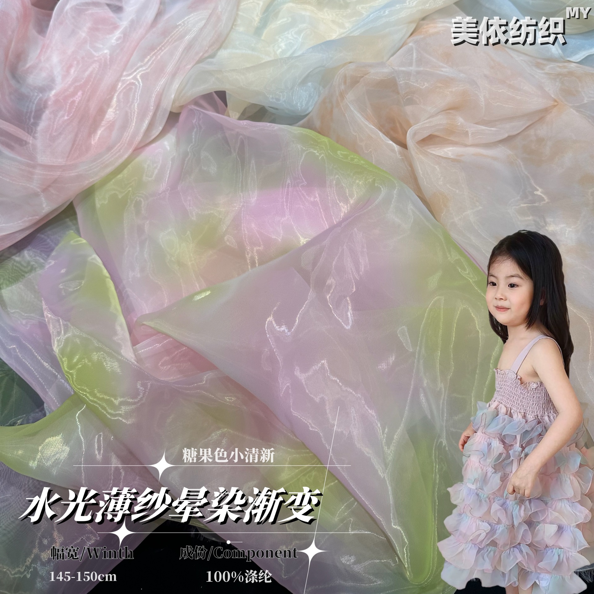 水光糸染めプリントぼかし生地欧根糸プリント春夏ワンピースシャツファッション蓬蓬スカート生地