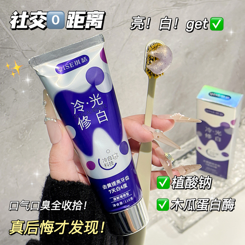 抖音热销正品QISE琪瑟色修清洁口气去黄美白牙膏薄荷香通用现厂家