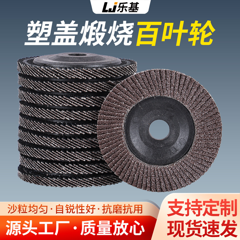 100直径4寸百叶片塑盖百叶轮加厚耐磨抛光轮金属抛光百页砂轮