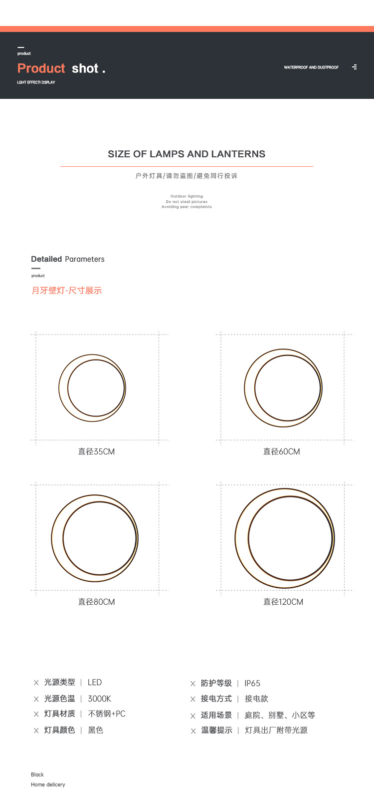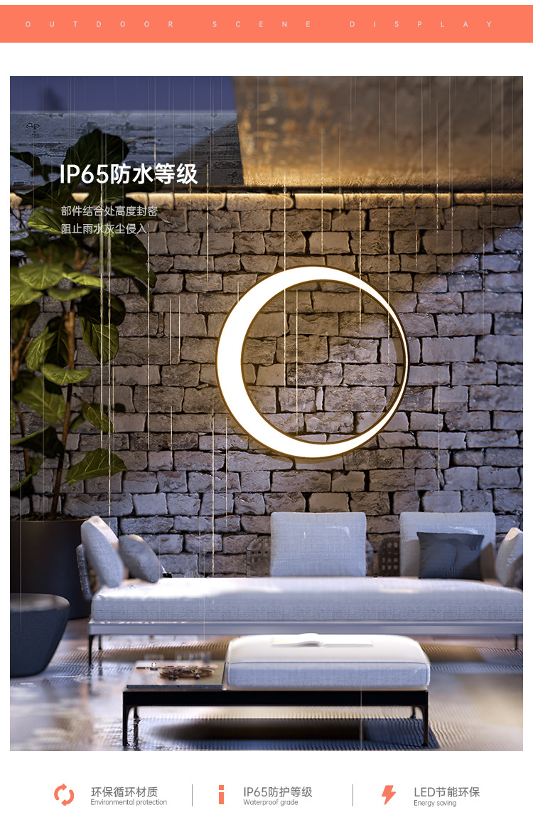戸外新中国式三日月壁灯防水階段通路外壁壁灯庭灯ベランダ壁灯月灯