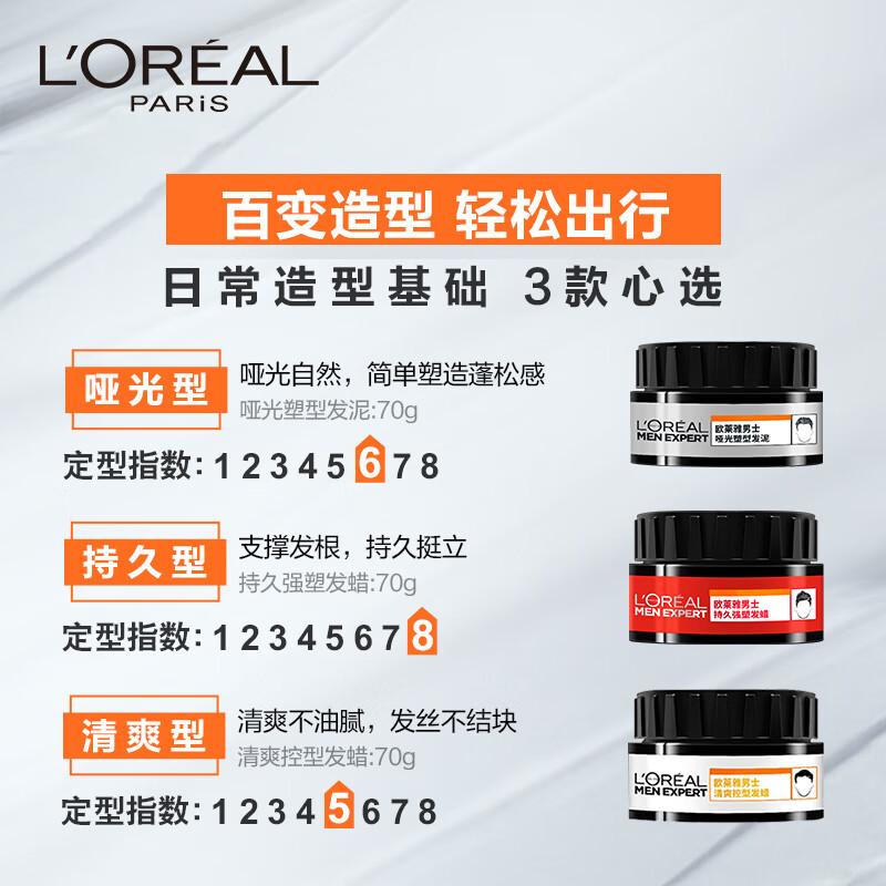 欧莱雅男士哑光喷雾发泥套装持久定型自然层次感清爽蓬松易塑性