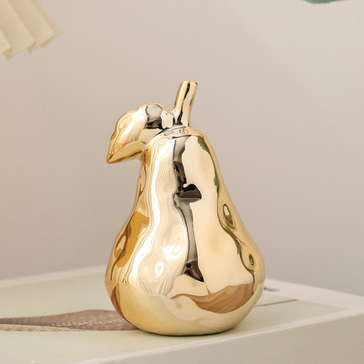现代简约梨形陶瓷雕像陶瓷材质光泽面处理奢华家居装饰提升室内美