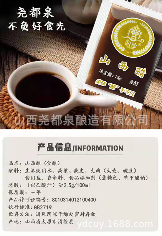 15グラム山西陳酢出前酢包小包装小袋酢美団饥えたか酢包非カプサイシン油麻油包