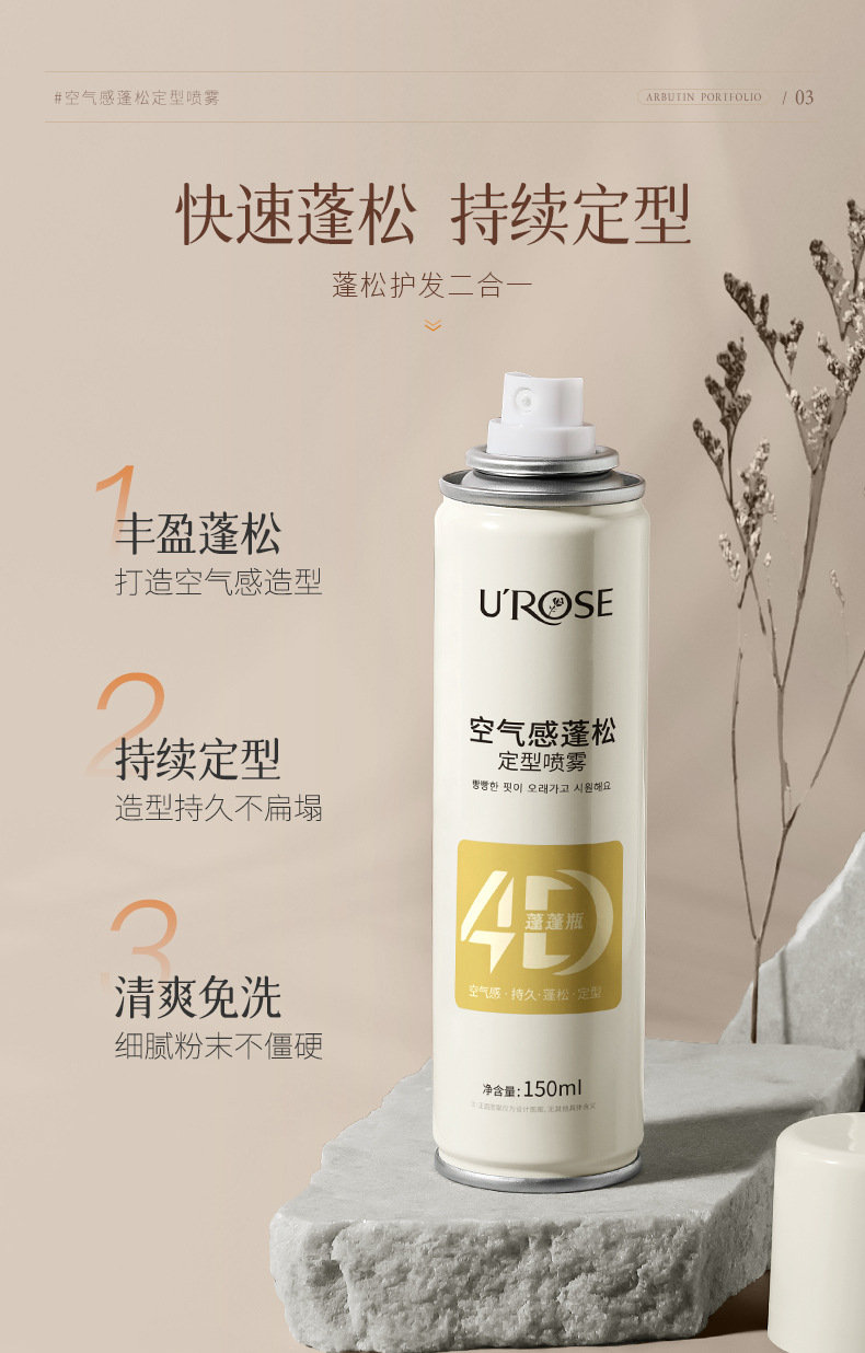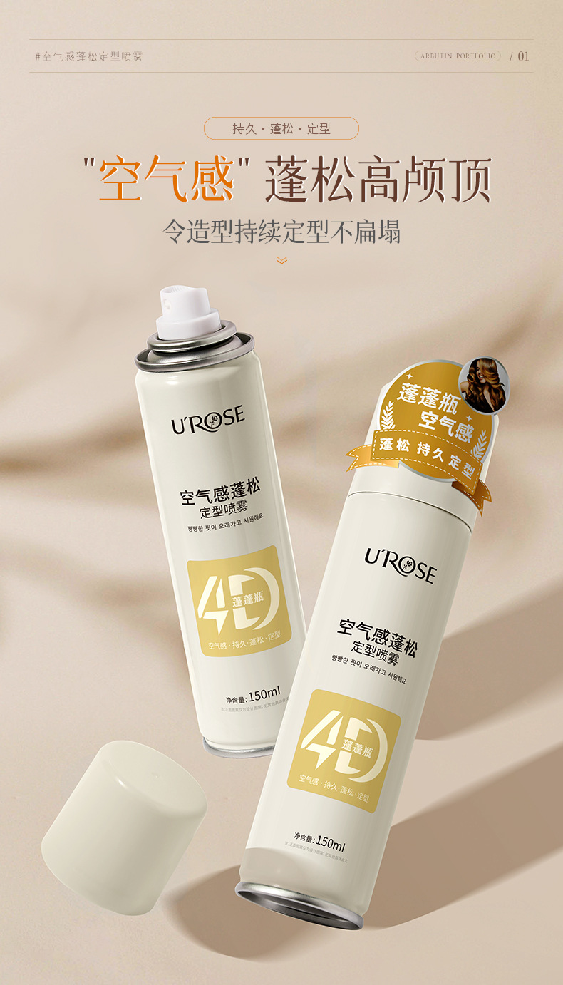 ふわふわスタイリングスプレー、自然で長持ち、高頭頂効果、オイルコントロール、保湿、さわやかでベタつかない、香りのよいヘアスプレー