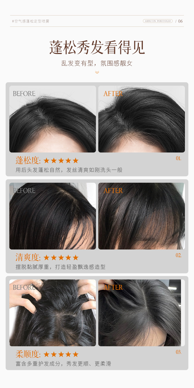 BABI定型喷雾空气感自然蓬松卷直发刘海男女高颅顶喷雾定形不软塌