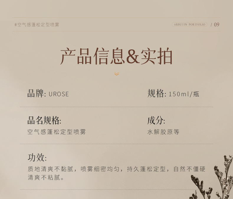 軽やかでふんわりとした定型スプレーが持続し、香りが持続します。