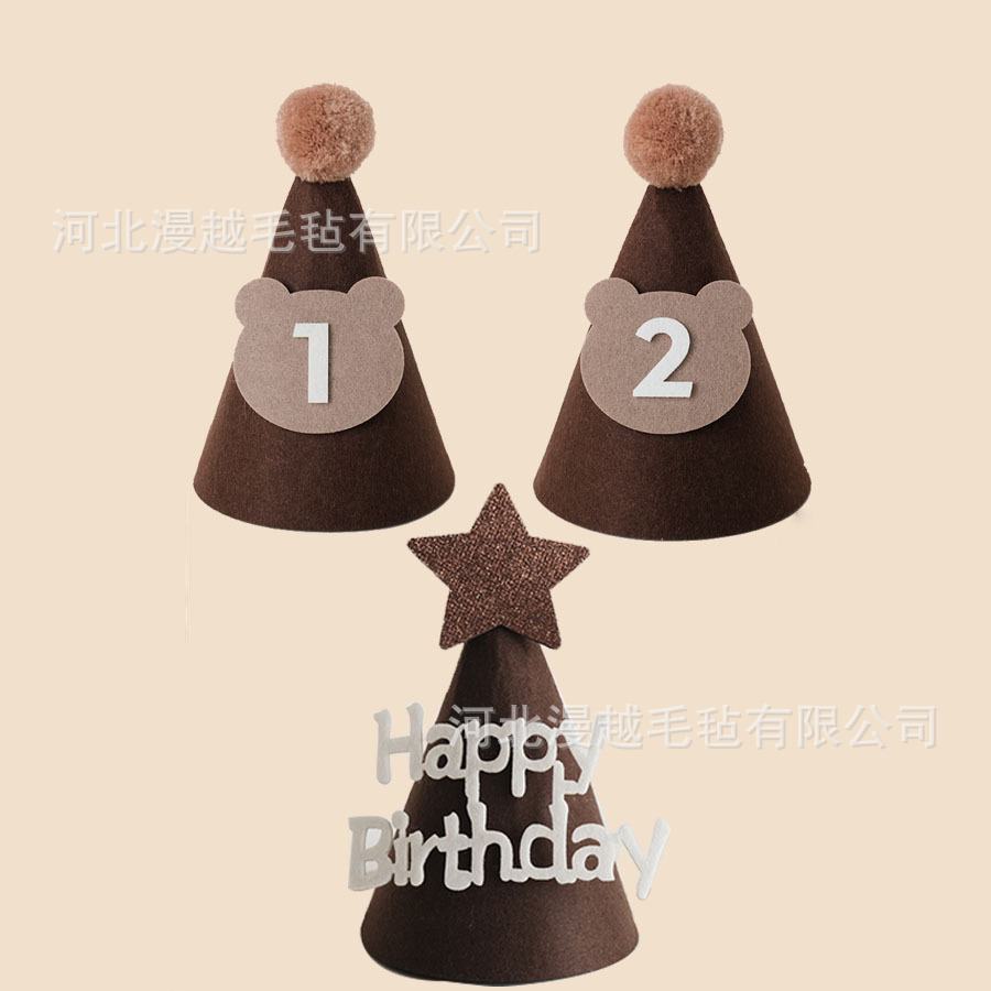 ネット赤ins森系赤ちゃん熊頭誕生日帽子供数字毛玉帽子満1歳パーティー衣装道具