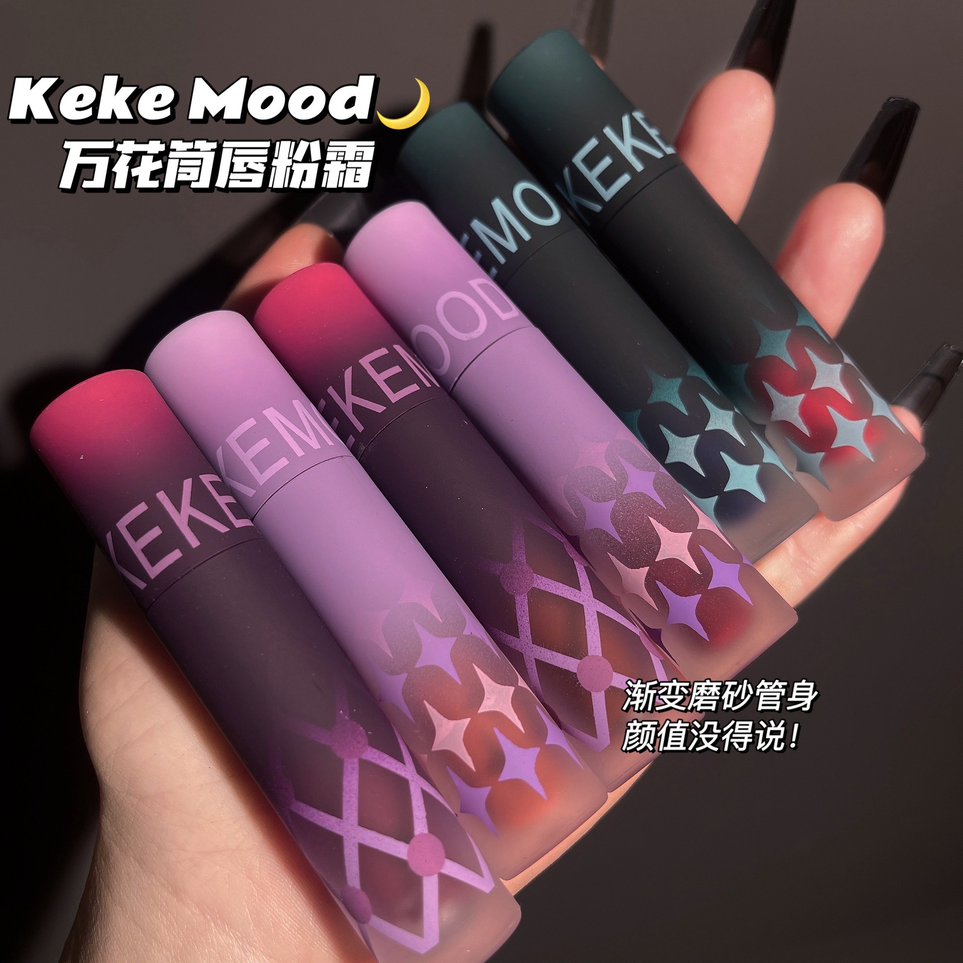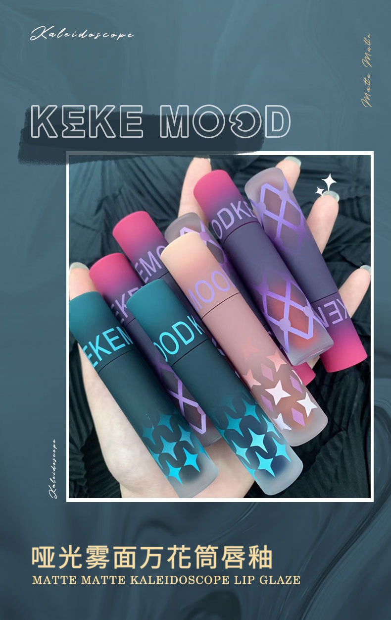 KEKEMOOD ピジョンブラッドレッドリップマッド カレイドスコープ ハート型マットベルベット ノンスティックカップ 学生向けリップグロス