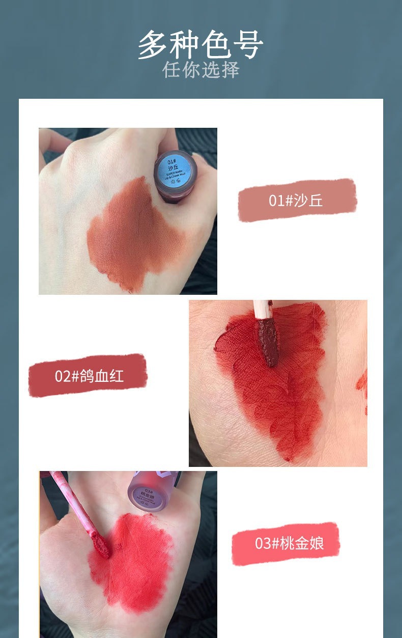黄皮本命!显白哑光雾面唇釉ins低饱和不掉色学生唇颊两用口红女