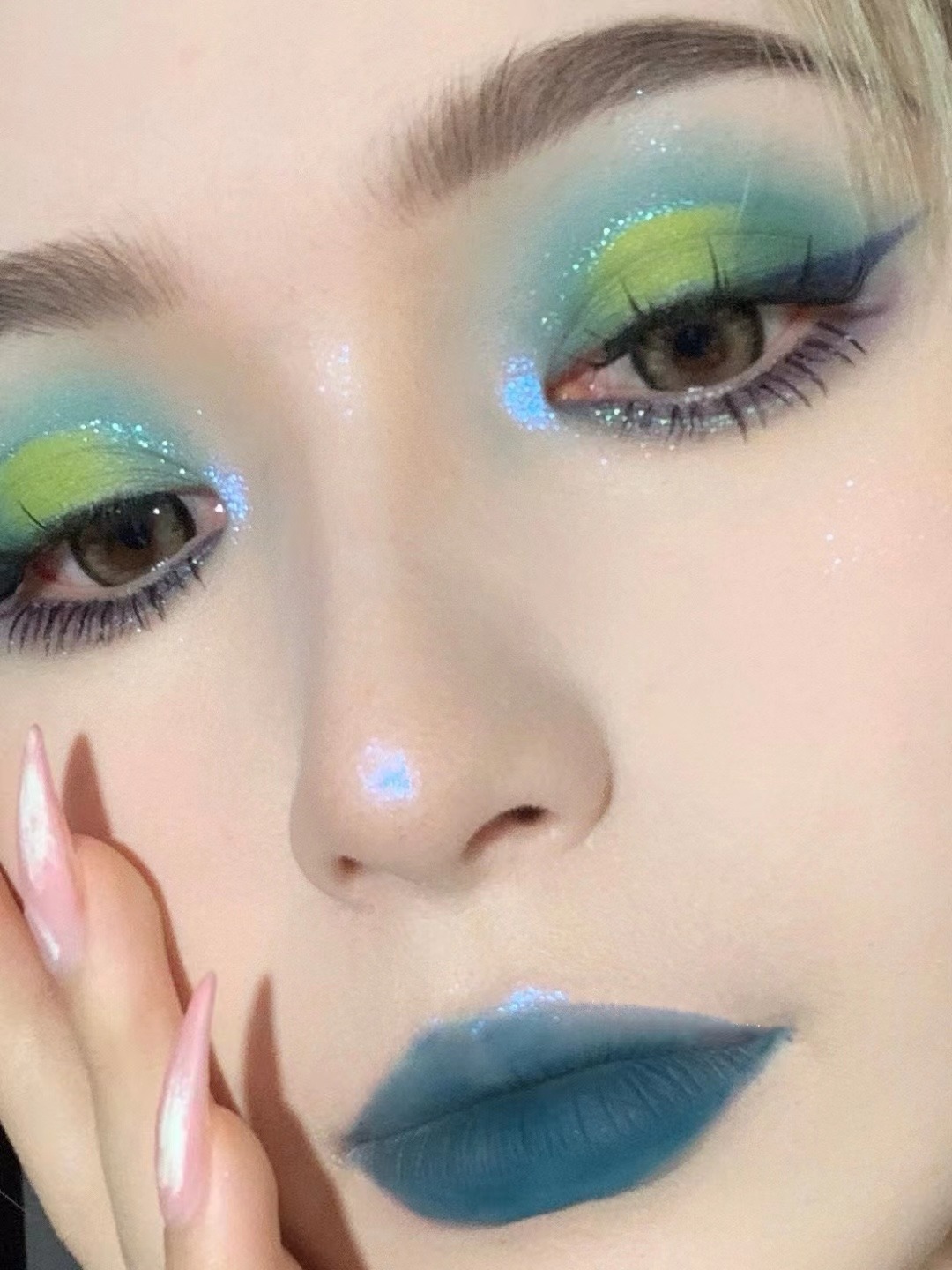 ボディグリッターのハイライトスプレーがきらきらしています。