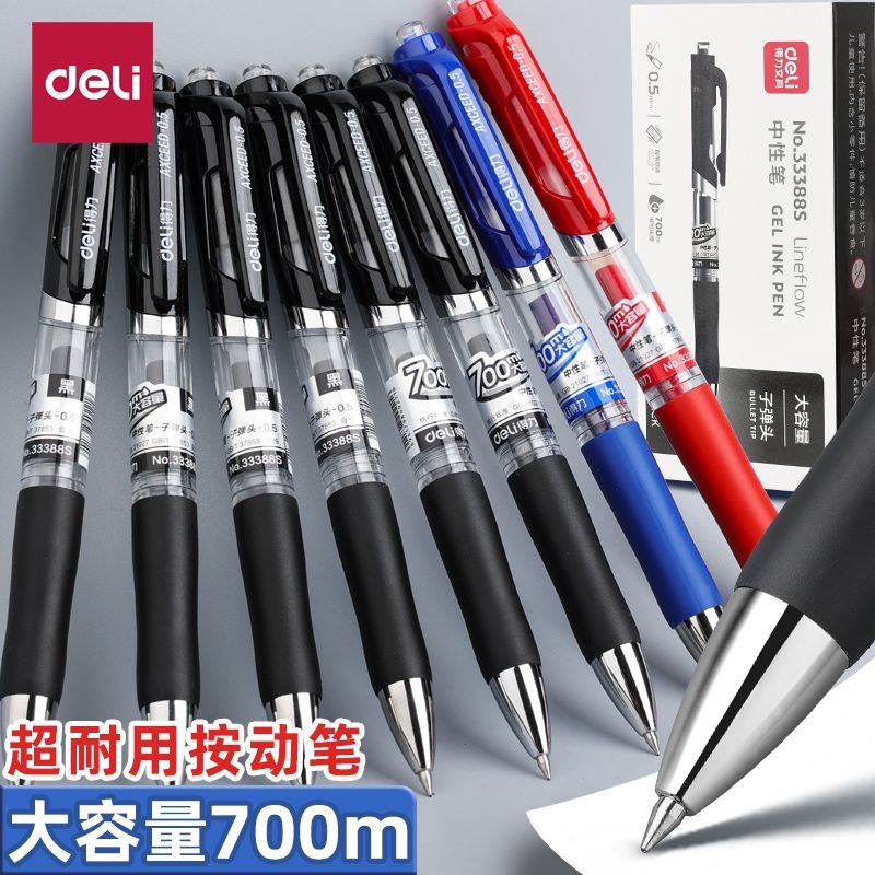 得力33388s中性ペン押し式黒水筆0.5卸売り赤青事務サインペン大容量