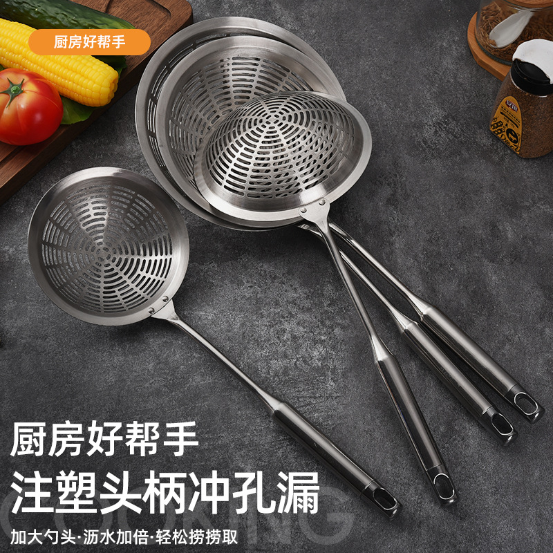 工厂食堂注塑头柄冲孔漏网勺厨房油炸过滤工具饭店捞面饺子长漏勺