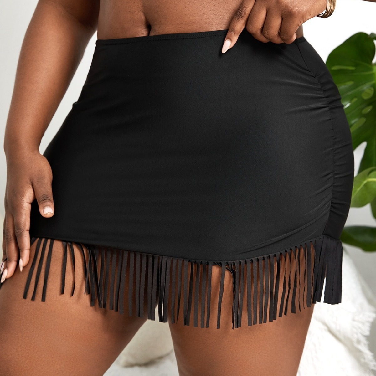 欧米の新型セクシーな水着の黒い純色の越境アマゾンの爆発的な大きいサイズの水着