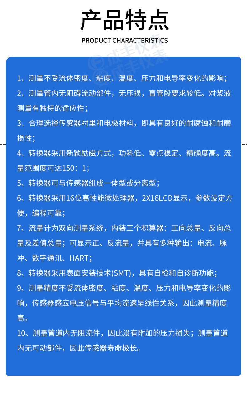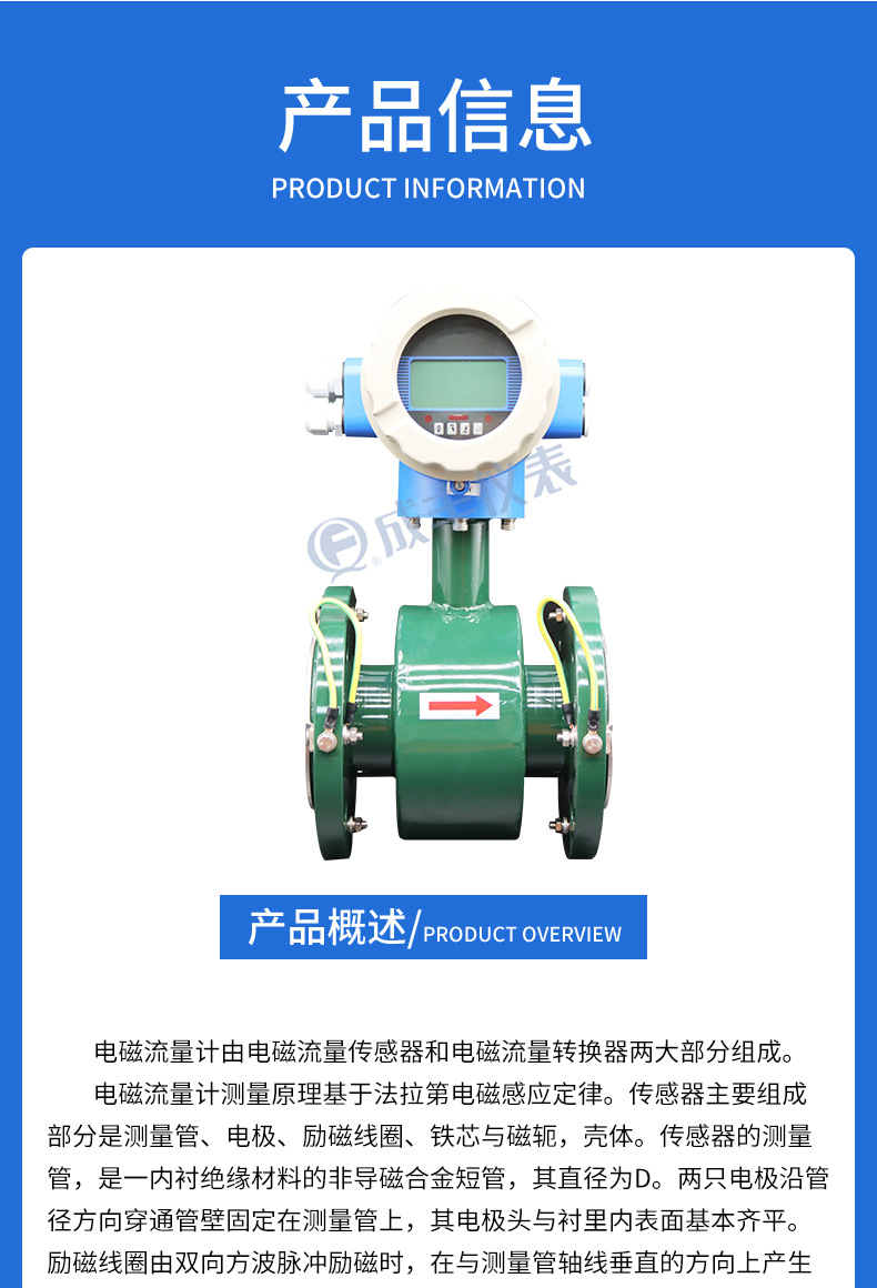 電磁流量計一体型メーターヘッドはデジタル表示付きで、測定精度が高く、取り付けが簡単で便利で、導電性液体の測定が可能です。