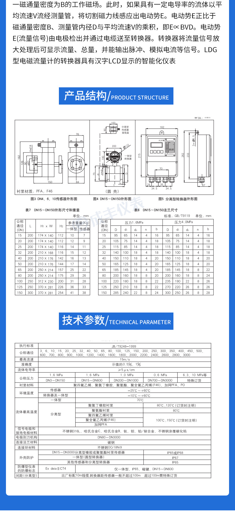 電磁流量計一体式デジタル表示強酸強アルカリ工業汚水泥パルプ防腐化学工業各種液体