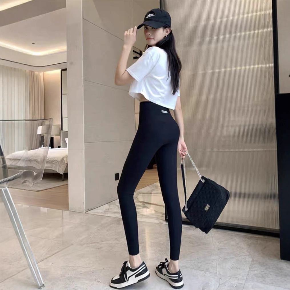 秋冬新款竖条加绒外穿高腰提臀收腹鲨鱼裤九分裤芭比裤400克重