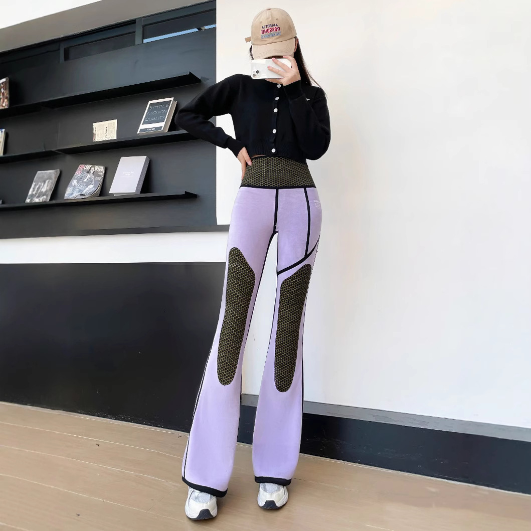 ベルベットは腰を厚くしてズボンを厚くしている女性2024春秋冬の微ラッパは腹を閉じて尻を温めて痩せているバービーのカジュアルパンツを見せている
