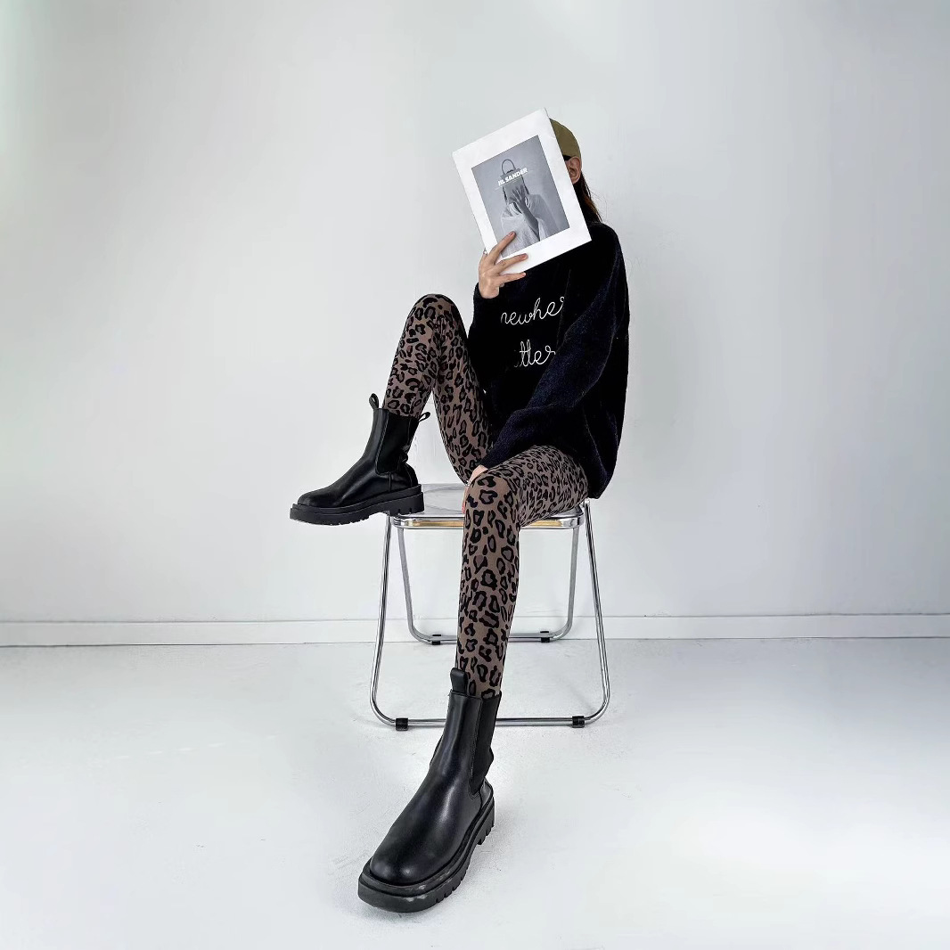 2025年 レオパード柄 裏起毛 レギンス レディースパンツ 通気性 ハイウエスト お腹シェイプ 九分丈パンツ