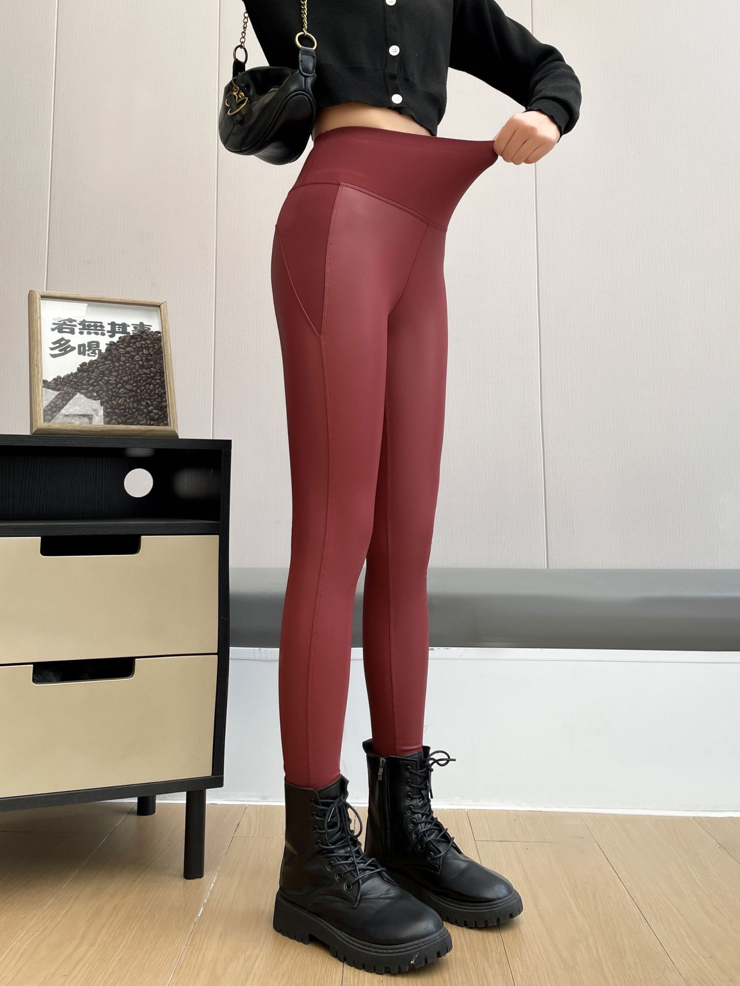 実際に毛を研ぐ機関車の皮のズボンの女性の高腰の弾力性は腹を収めてお尻を持ち上げて外に底のサメのズボンの秋冬とベルベットのpuの皮を着ます。
