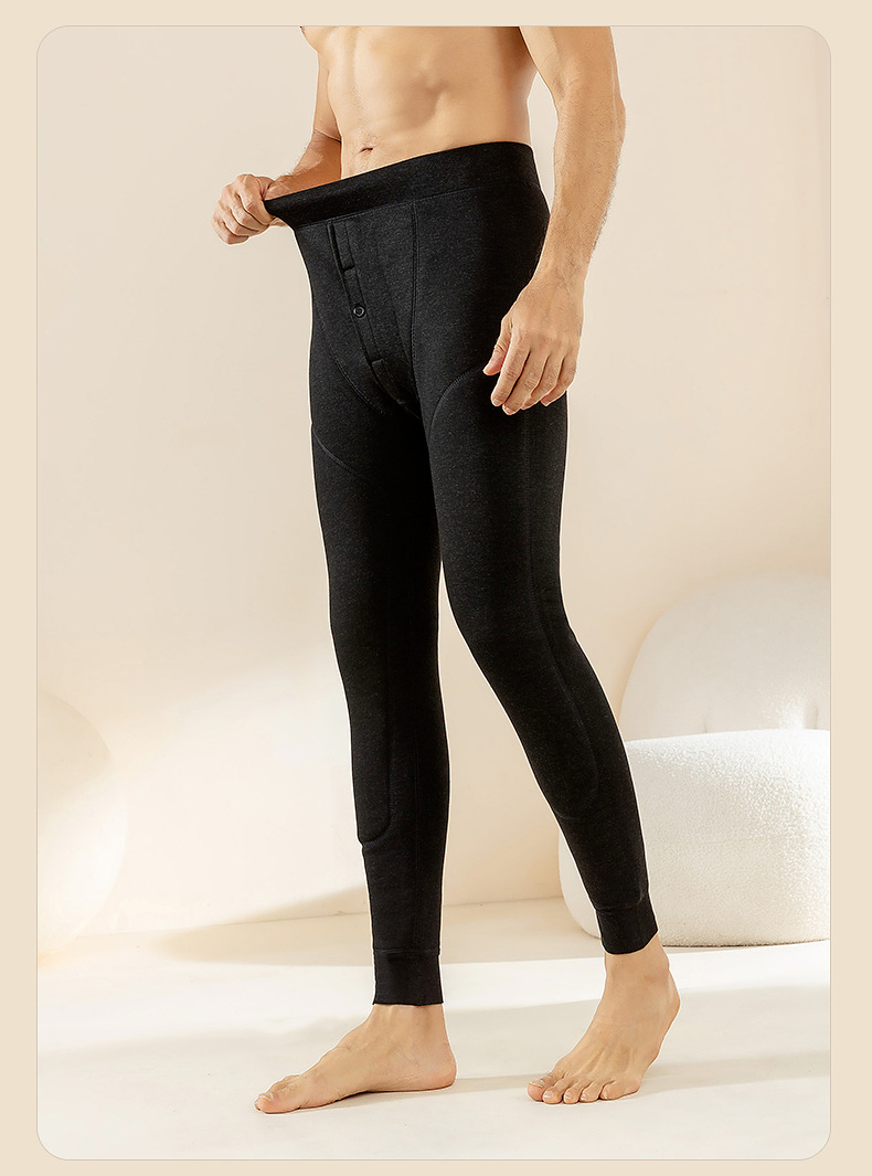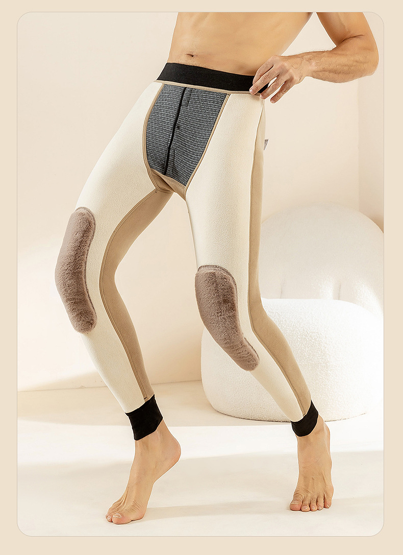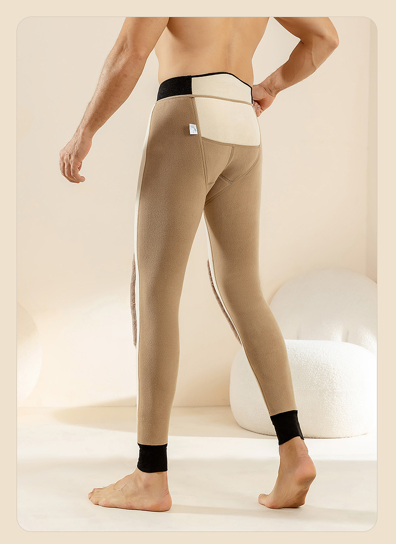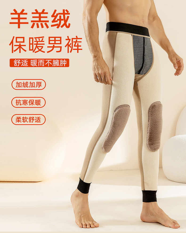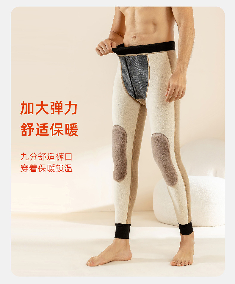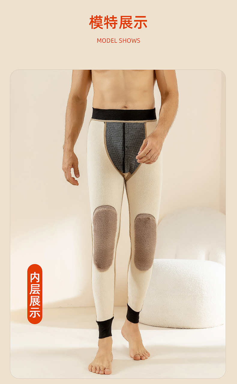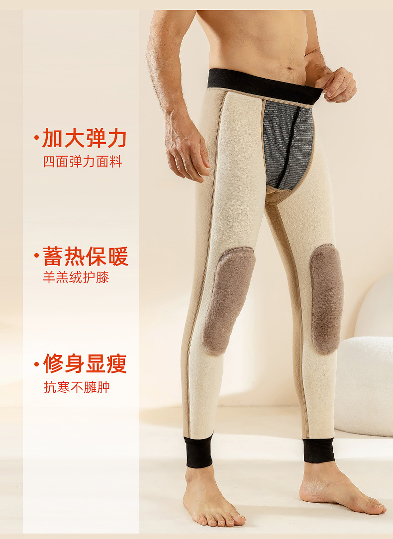 羊毛男士保暖裤加绒加厚棉裤加长护膝冬季高腰护腰一体内穿打底裤