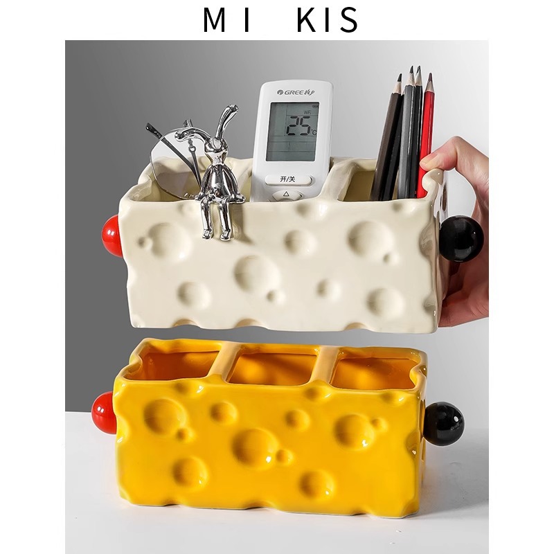 チーズリモコンデスクトップ収納ボックスクリエイティブ文房具オフィス雑物収納桶筒リビングルームティー整理ボックス
