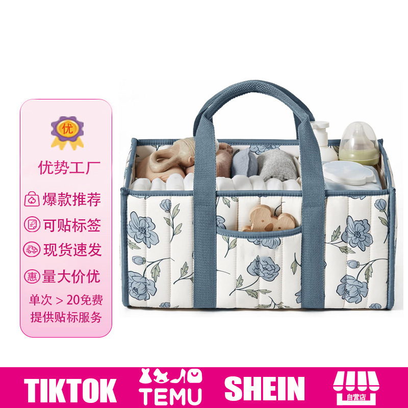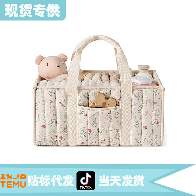 新款绗缝面料尿不湿收纳袋可折叠妈咪包便携式收纳袋手拎袋尿布包