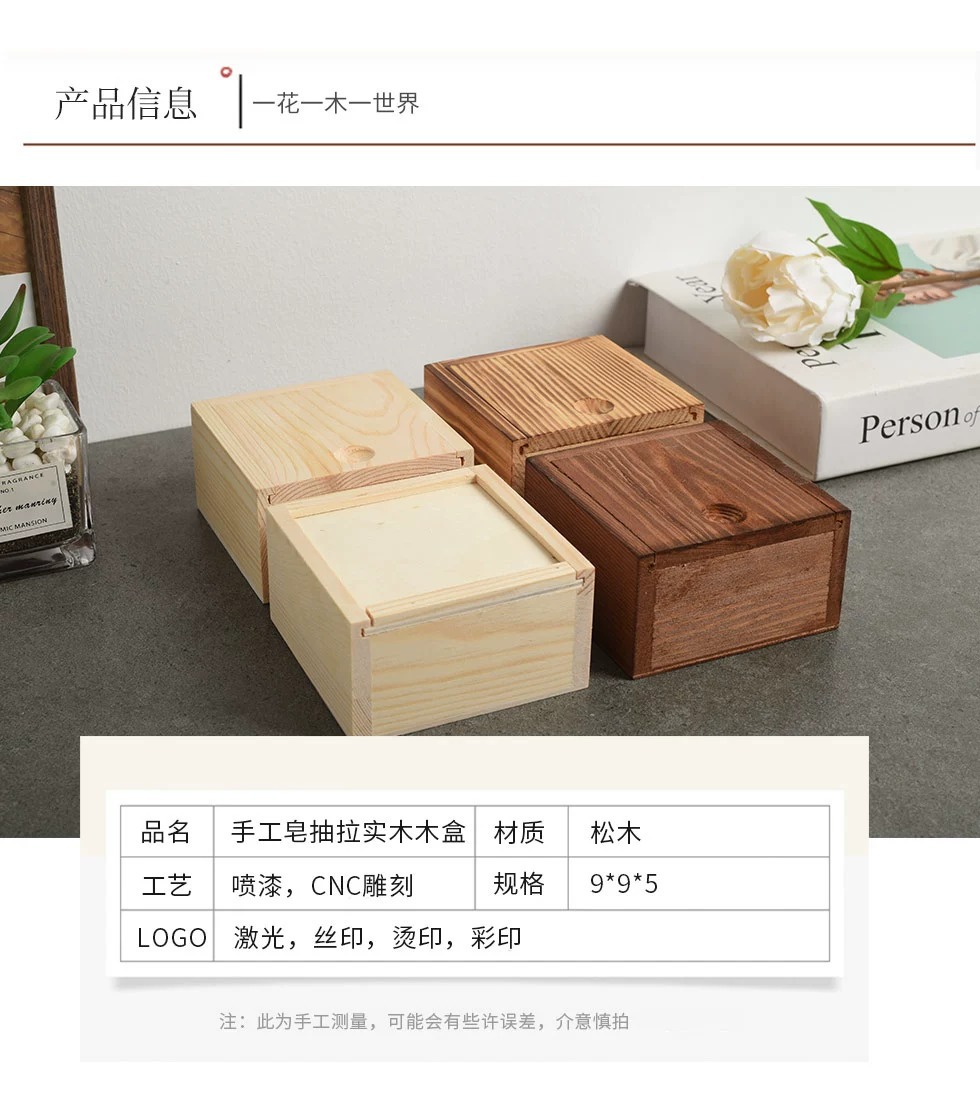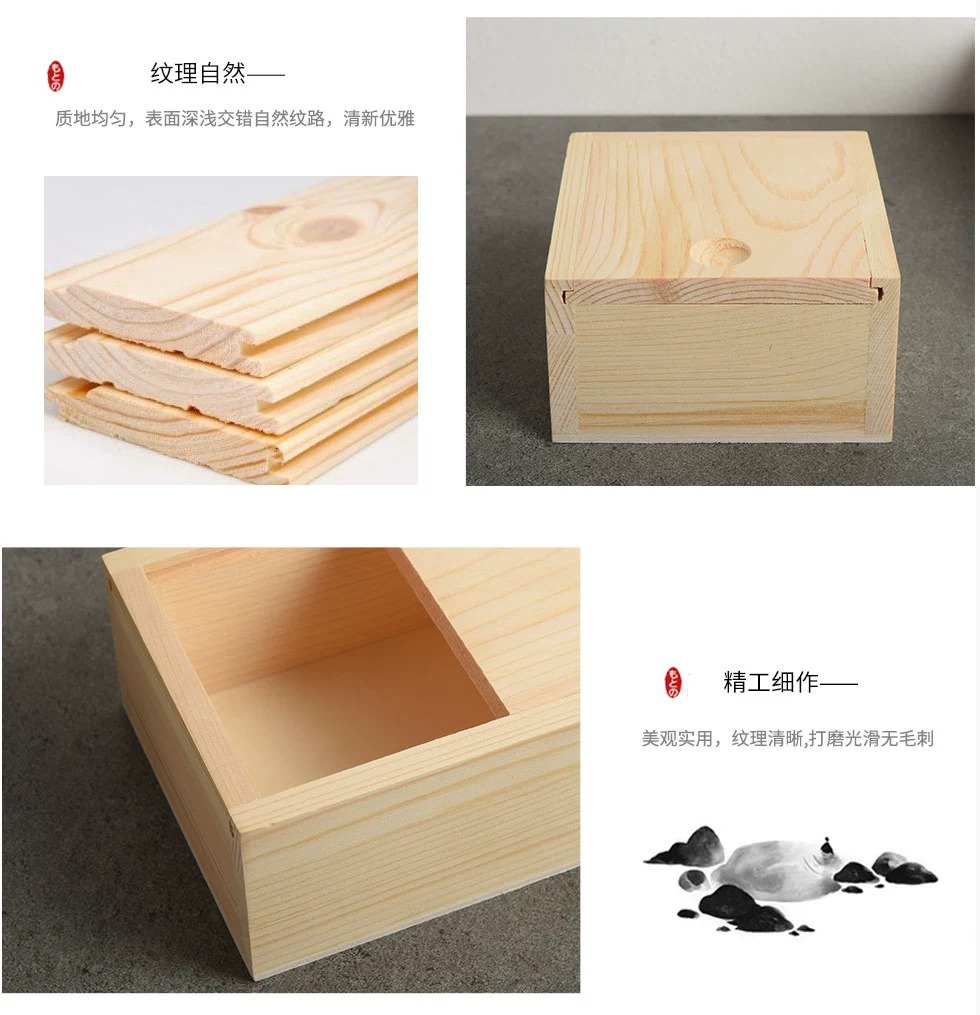 曹県実木引き出し蓋箱長方形正方形デスクトップ収納箱松木礼箱包装木箱現物