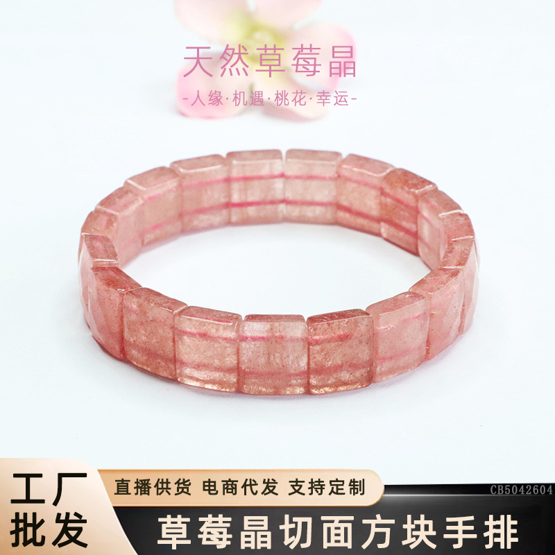愛钰天然水晶手列粉水晶いちご晶虎眼石手牌手串直播電商ソース卸売り