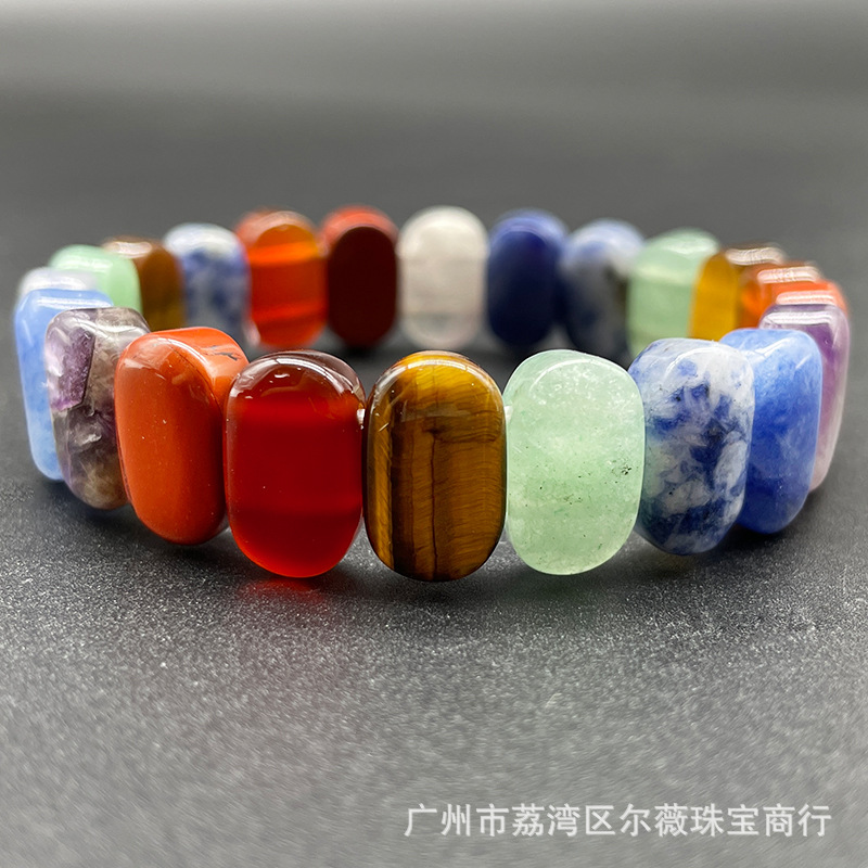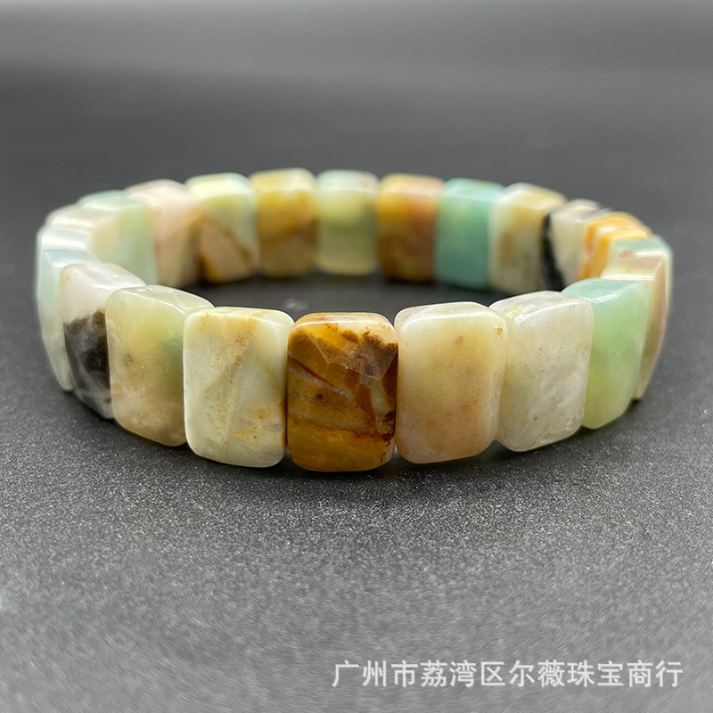 跨境爆款天然石白水晶黄虎眼石冰曜石切面长方形手牌手串手链配饰