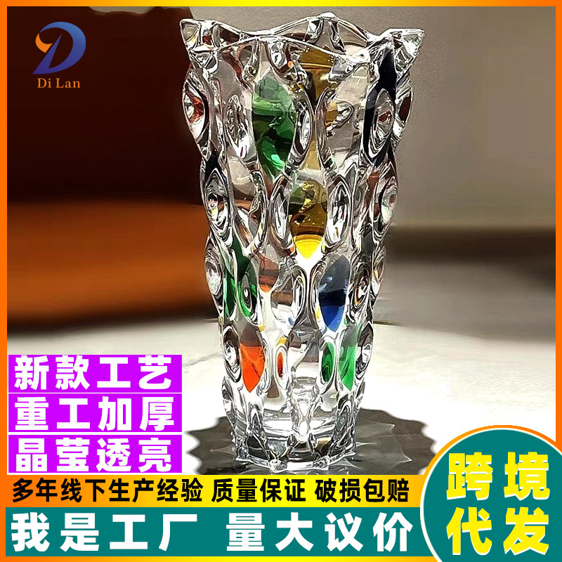 シンプル高级感カラードットクリスタルガラス花瓶水养インスタ风家庭用デスクトップ置物置物